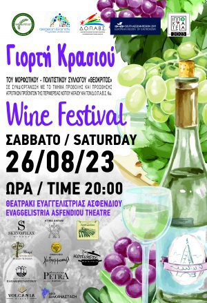 Την καθιερωμένη Γιορτή κρασιού διοργανώνει ο Πολιτιστικός Σύλλογος Ασφενδιού Ο Θεόκριτος το Σάββατο 26 Αυγούστου στις 8 τα βράδυ στο Θεατράκι Ευαγγελίστριας.