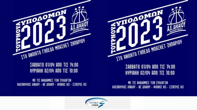 Το δικό της αναπτυξιακό τουρνουά, διοργανώνει το διήμερο 1-2 Απριλίου, η Α.,Ε. Δικαίου με τη συμμετοχή του Κλεόβουλου Λίνδου, του Φοίβου Κω και του Εσπέρου Κω. Η ανακοίνωση του συλλόγου: ”Η Α.Ε. Δικαίου με χαρά σας προσκαλεί στο διήμερο τουρνουά των υποδομών της στο γήπεδο Ζηπαρίου το Σάββατο και την Κυριακή 1-2/04/2023 με σκοπό την δυνατότητα συμμετοχής σε αγώνες και των πιο μικρών μας αθλητών, την χαρά την γνωριμία και την διασκέδαση των παιδιών από όλα τα σωματεία.