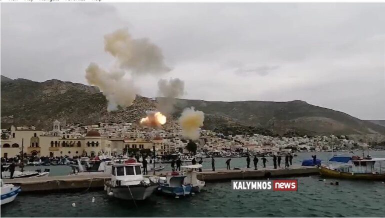 Στις 12.00 ακριβώς το μεσημέρι ,μόλις οι καμπάνες των Εκκλησιών του νησιού χτυπούσαν χαρμόσυνα ,οι “δυναμιτιστές” δημιούργησαν το δικό τους εκρηκτικό αναστάσιμο κλίμα με τη ρίψη δεκάδων δυναμιτών, στο λιμάνι της Καλύμνου.