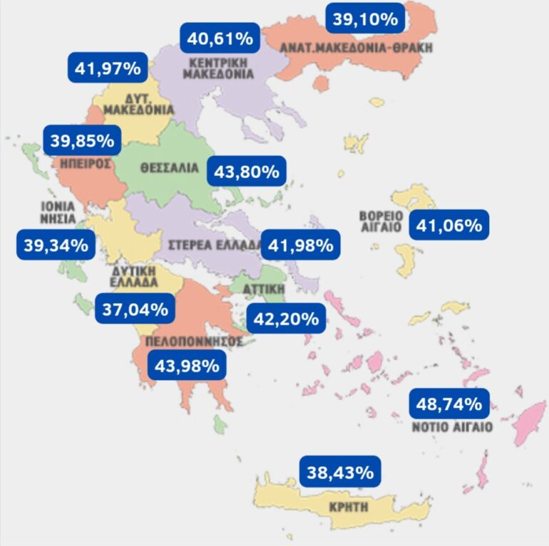 Το Νότιο Αιγαίο η Περιφέρεια με το υψηλότερο ποσοστό της Νέας Δημοκρατίας