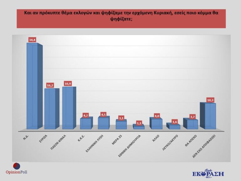 Τη δυναμική που κατέγραφε το ΠΑΣΟΚ το οποίο εν τέλει και εκ των αποτελεσμάτων των Εκλογών της 21ης Μαΐου, έπιασε τη δεύτερη θέση και επισήμως στην Κω, την είχε καταγράψει πρώτη απ’ όλους η δημοσκόπηση της Opinion Poll που διενεργήθηκε για λογαριασμό του Έκφραση97 τον Ιούλιο του 2022. Ενδιαφέροντα στοιχεία και στη δυναμική των υποψηφίων βουλευτών Δωδεκανήσου για κάθε κόμμα.