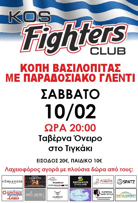Share Facebook Twitter LinkedIn Pinterest Email ΤΟ ΔΙΟΙΚΗΤΙΚΟ ΣΥΜΒΟΥΛΙΟ ΤΟΥ ΣΥΛΛΟΓΟΥ ” KOS FIGHTERS ” ΣΑΣ ΠΡΟΣΚΑΛΕΙ ΣΤΗΝ ΧΟΡΟΕΣΠΕΡΙΔΑ ΠΟΥ ΘΑ ΠΡΑΓΜΑΤΟΠΟΙΗΘΕΊ ΣΑΒΒΑΤΟ 10 ΦΕΒΡΟΥΑΡΙΟΥ 2024 ΣΤΗΝ ΤΑΒΕΡΝΑ “ΟΝΕΙΡΟ” ΣΤΟ ΤΙΓΚΆΚΙ ΚΑΙ ΩΡΑ 20:00. ΤΟ Δ.Σ ΤΟΥ ΣΥΛΛΟΓΟΥ . ΤΙΜΗ ΠΡΟΣΚΛΗΣΗΣ 20€ ΚΑΙ ΠΑΙΔΙΚΟ 10€ . Χοροεσπερίδα