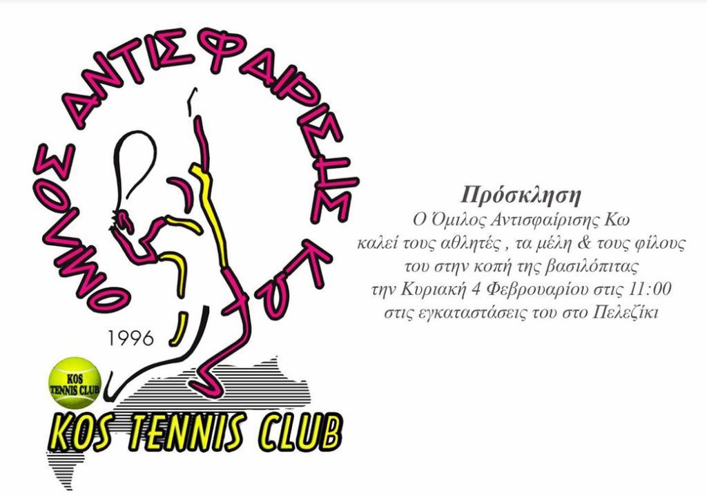 Όμιλος Αντισφαίρισης Κω: Πρόσκληση για την κοπή της Βασιλόπιτας