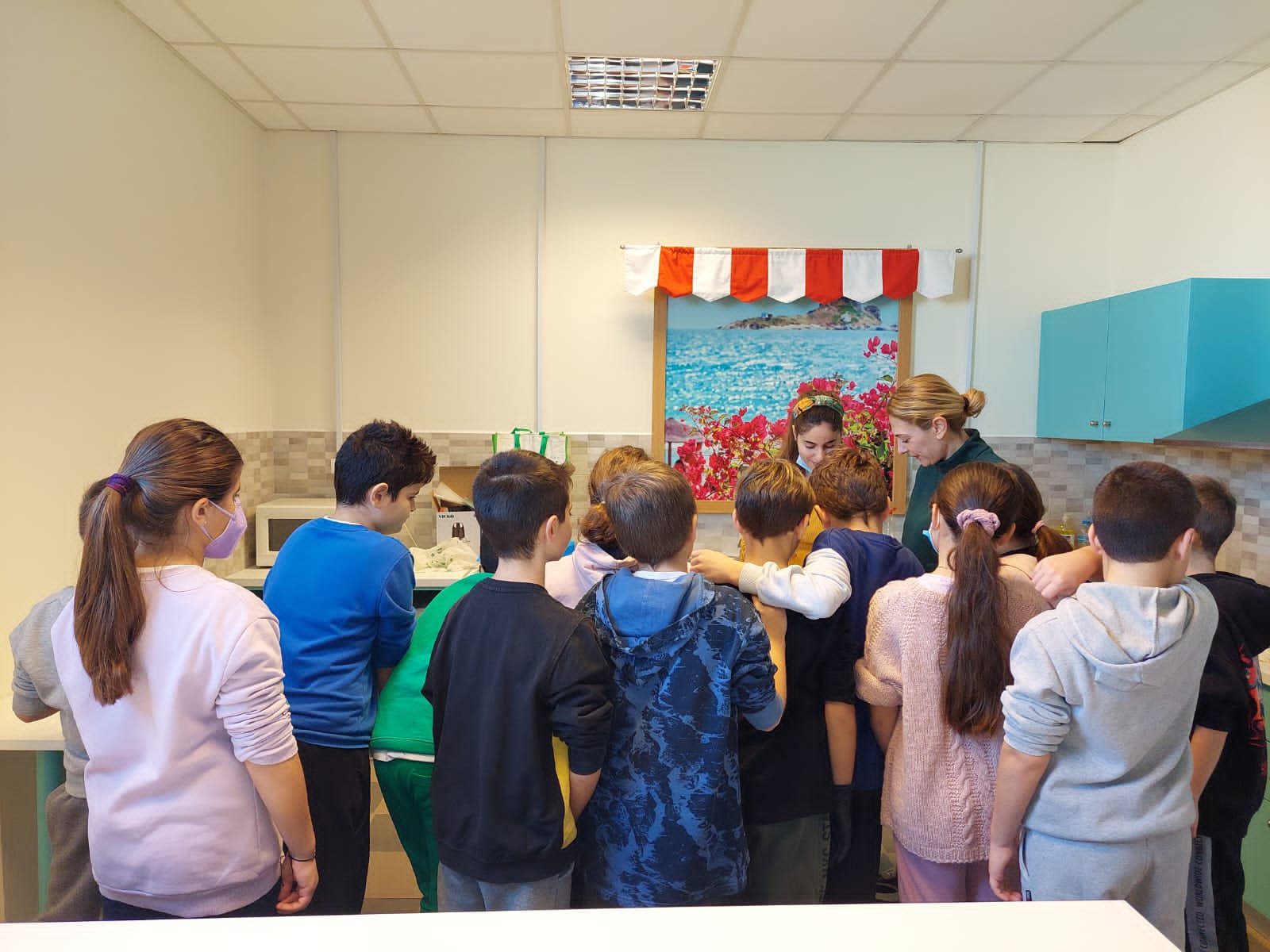 Παράλληλα, σήμερα τα παιδιά μπήκαν στην κουζίνα του σχολείου, η οποία κατασκευάστηκε με πρωτοβουλία του Συλλόγου Γονέων και Κηδεμόνων και έφτιαξαν κουλουράκια.