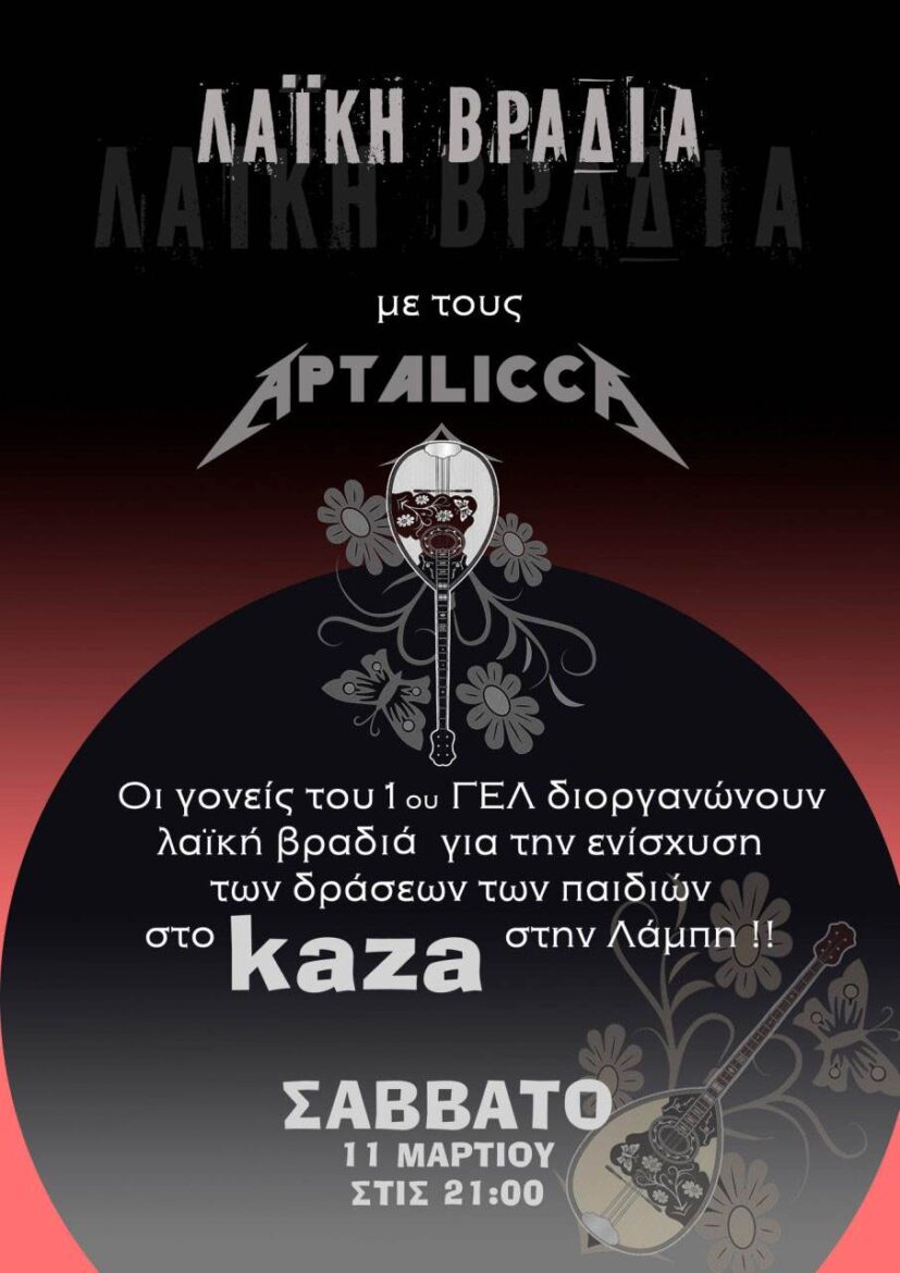 Λαϊκή βραδιά με τους ΑΡΤΑLICCA στις 11 Μαρτίου από τους γονείς του 1ου ΓΕΛ Κω για την ενίσχυση των δράσεων των παιδιών στο ΚΑΖΑ.