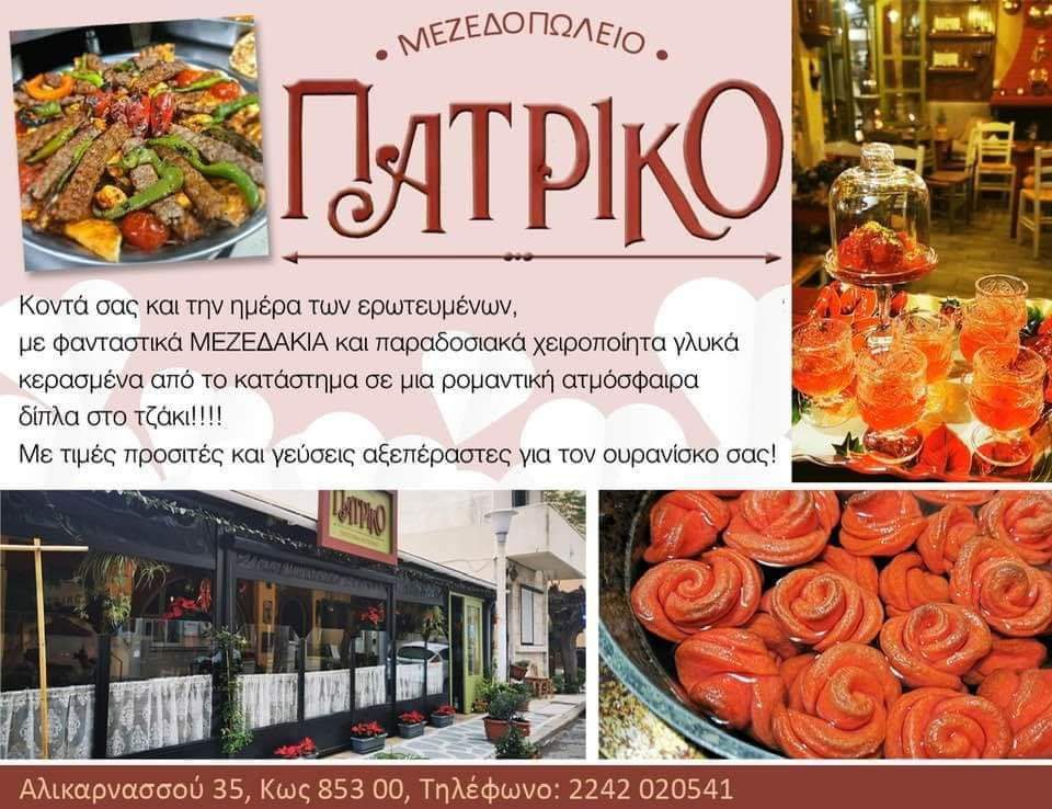 Έτσι στο Πατρικό το προσωπικό θα είναι στην διάθεση σας με γεύσεις διαχρονικές και με άρωμα πολίτικης κουζίνας σε εορταστική ατμόσφαιρα!
