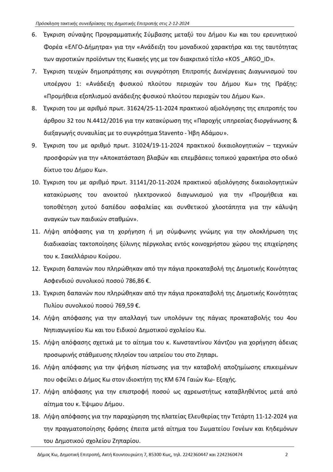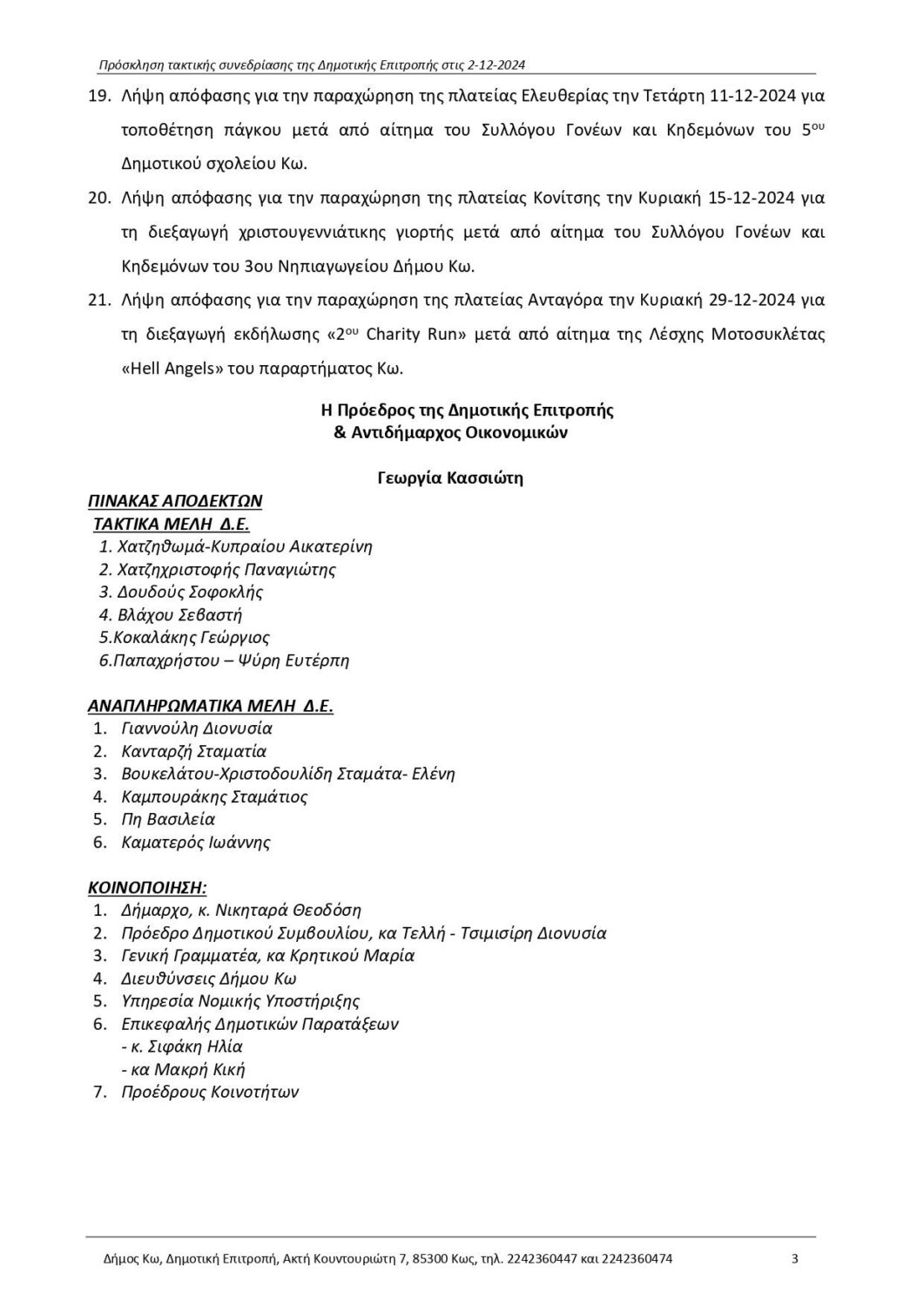 Συνεδριάζει η Δημοτική Επιτροπή Δευτέρα 2 Δεκεμβρίου