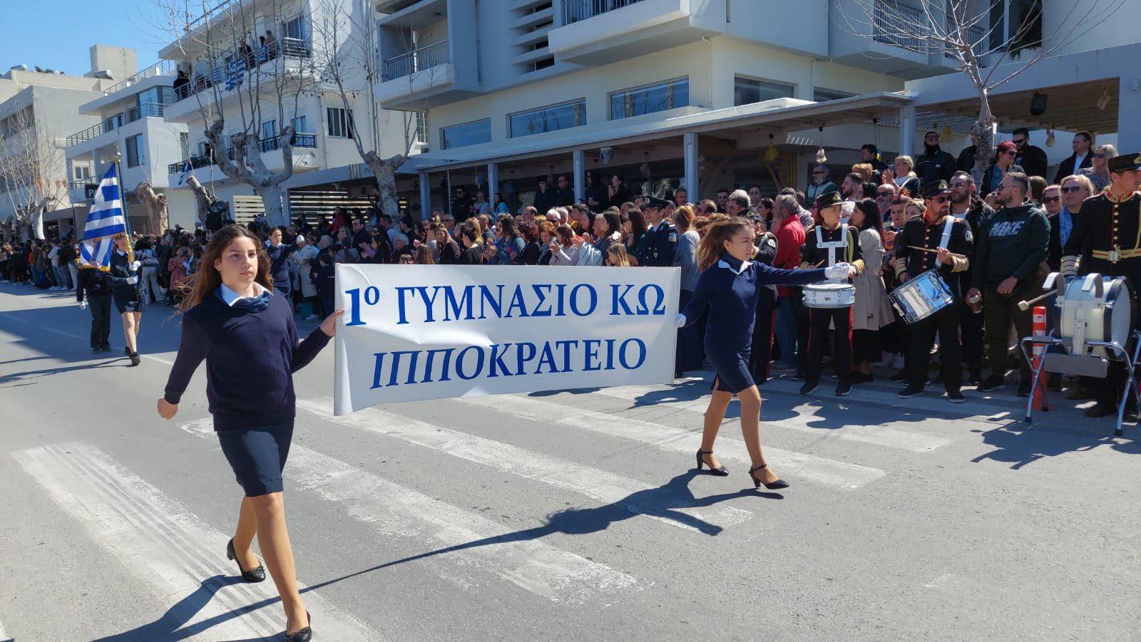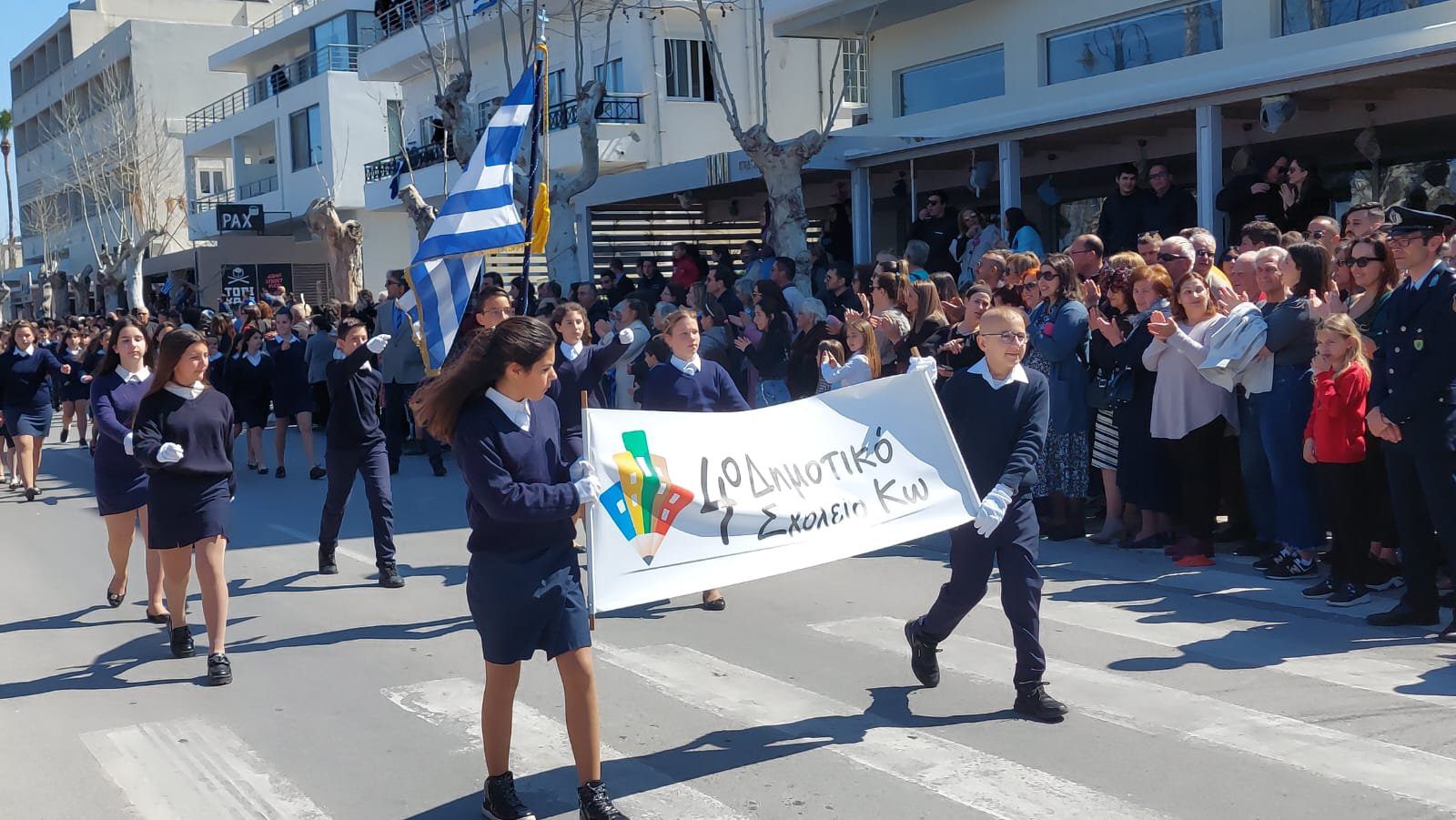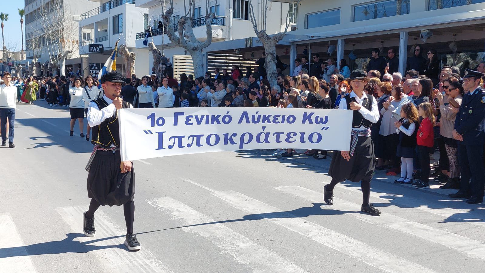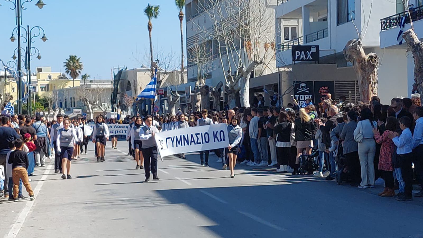 Ακολούθησε η παρέλαση με επικεφαλής τη Φιλαρμονική του Δήμου Κω, των Εφεδροπολεμιστικών Οργανώσεων, του Ε.Ε.Σ. Περιφερειακό Τμήμα Κω, μαθητών της Δευτεροβάθμιας και Πρωτοβάθμιας Εκπαίδευσης , Προσκόπων, Οδηγών, του Παραρτήματος του Λυκείου Ελληνίδων Κω, την Ελληνική ομάδα διάσωσης και λοιπών Συλλόγων.