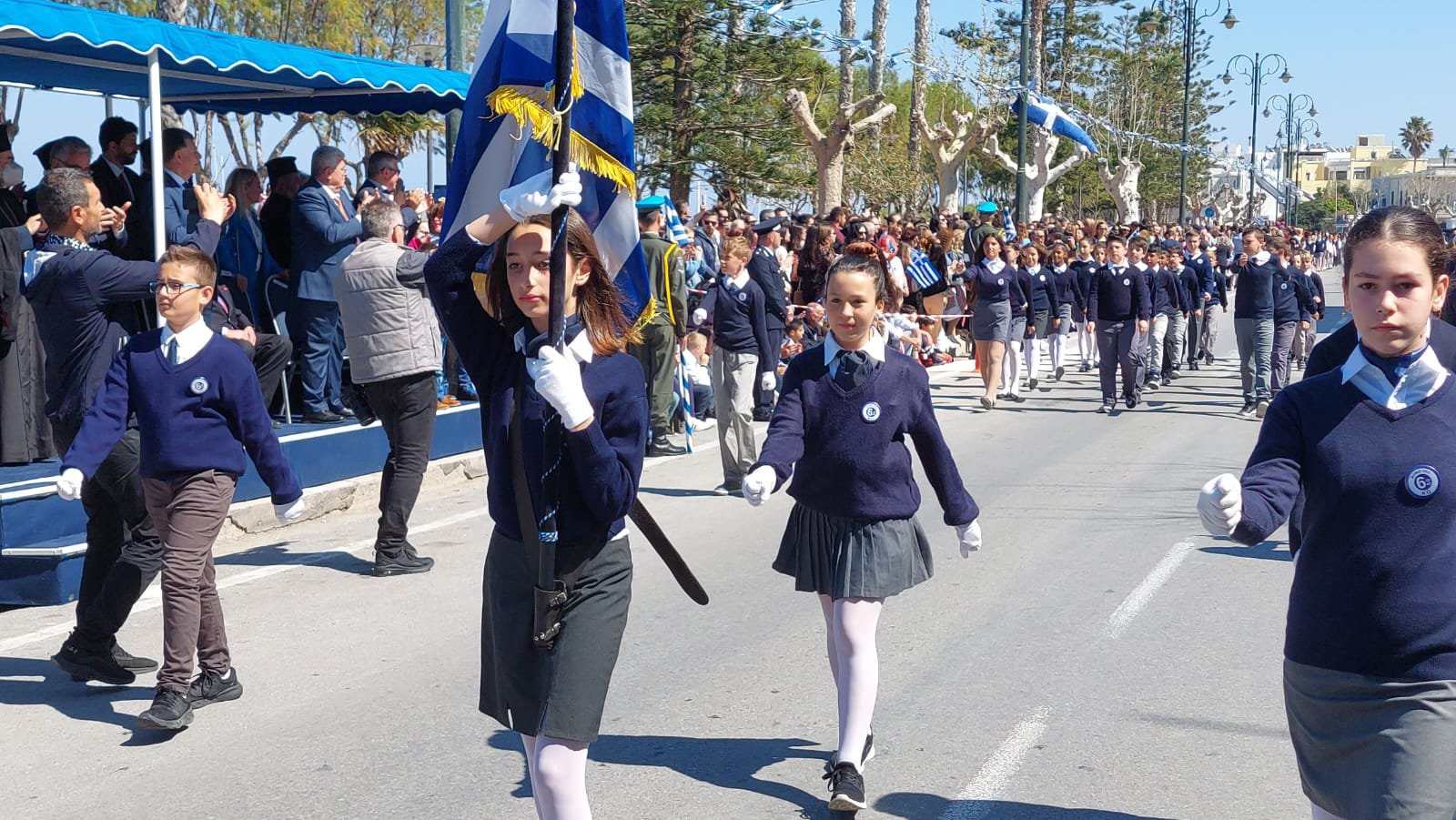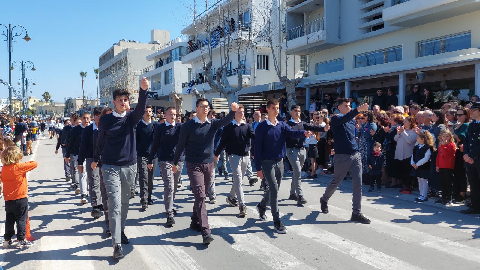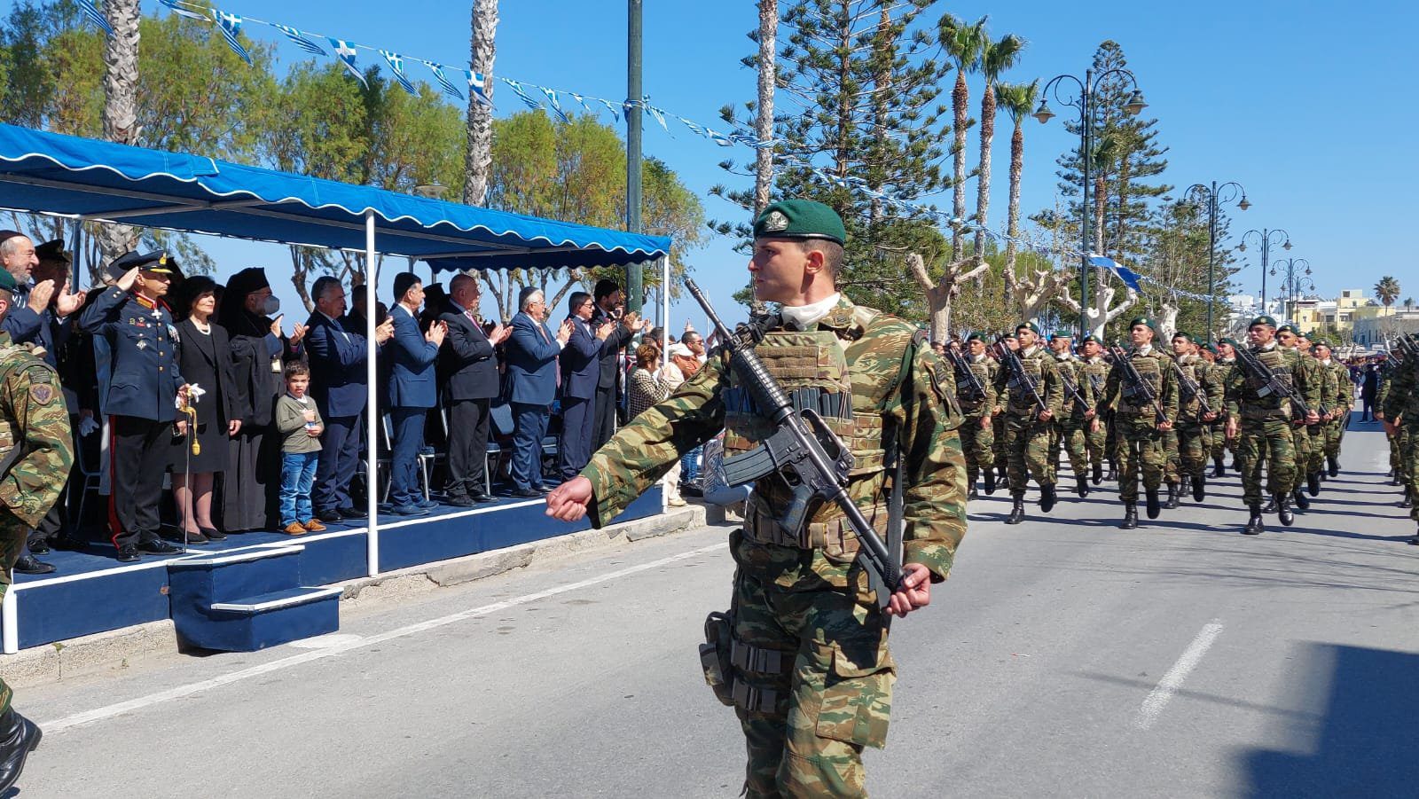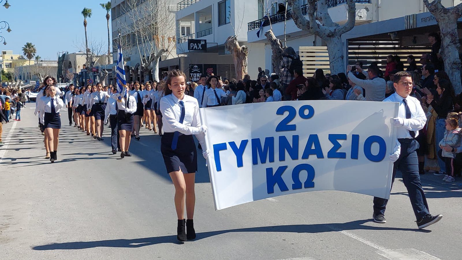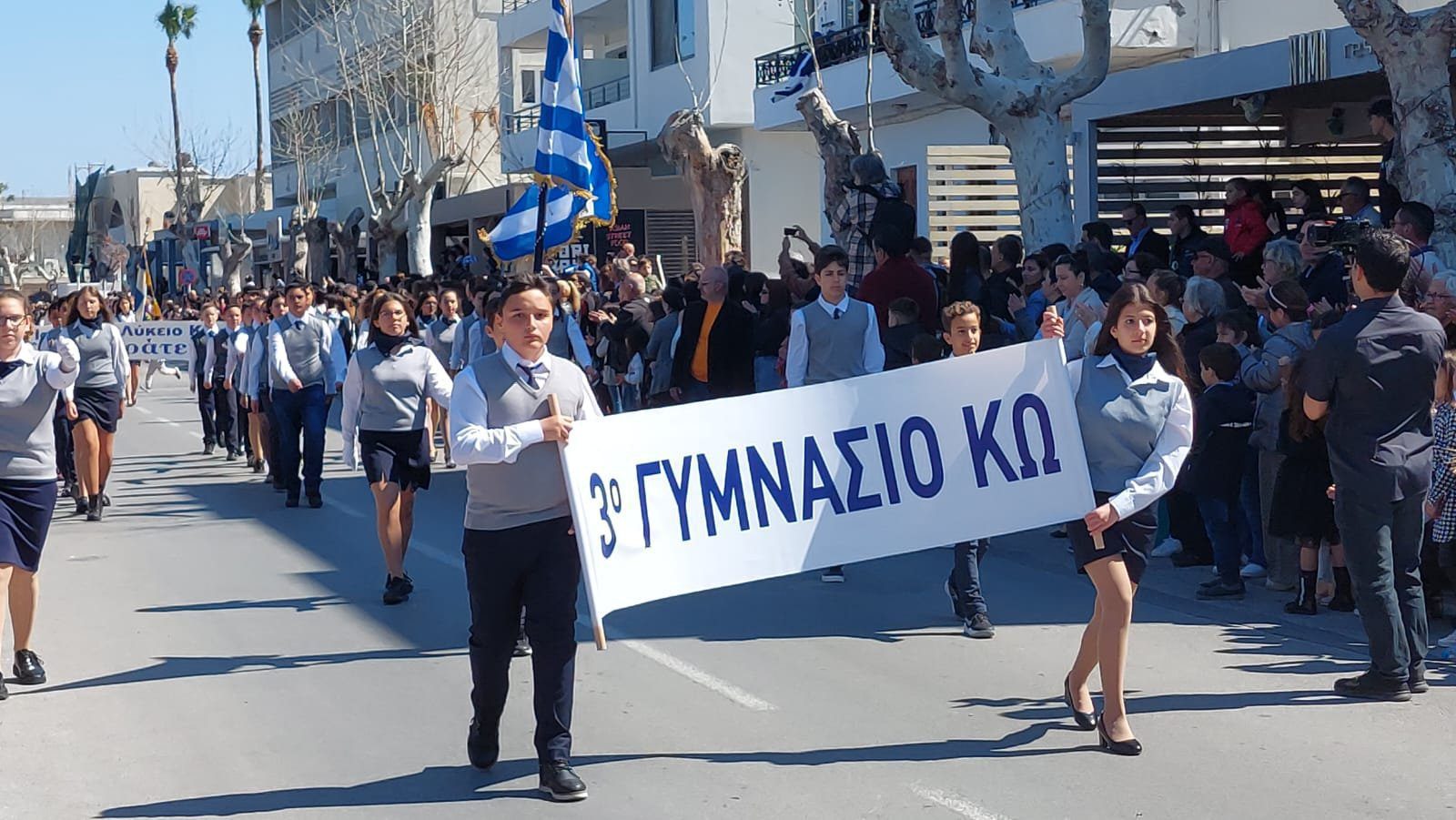 Ακολούθησε η παρέλαση με επικεφαλής τη Φιλαρμονική του Δήμου Κω, των Εφεδροπολεμιστικών Οργανώσεων, του Ε.Ε.Σ. Περιφερειακό Τμήμα Κω, μαθητών της Δευτεροβάθμιας και Πρωτοβάθμιας Εκπαίδευσης , Προσκόπων, Οδηγών, του Παραρτήματος του Λυκείου Ελληνίδων Κω, την Ελληνική ομάδα διάσωσης και λοιπών Συλλόγων.