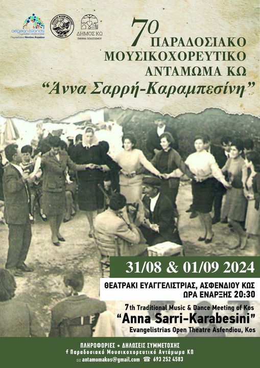 Με μεγάλη χαρά ανακοινώνουμε το 7ο Παραδοσιακό Μουσικοχορευτικό Αντάμωμα ΚΩ «ΑΝΝΑ ΣΑΡΡΗ-ΚΑΡΑΜΠΕΣΙΝΗ»