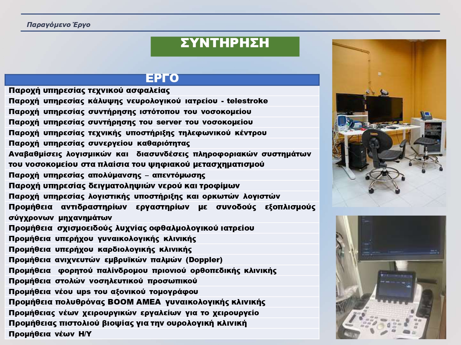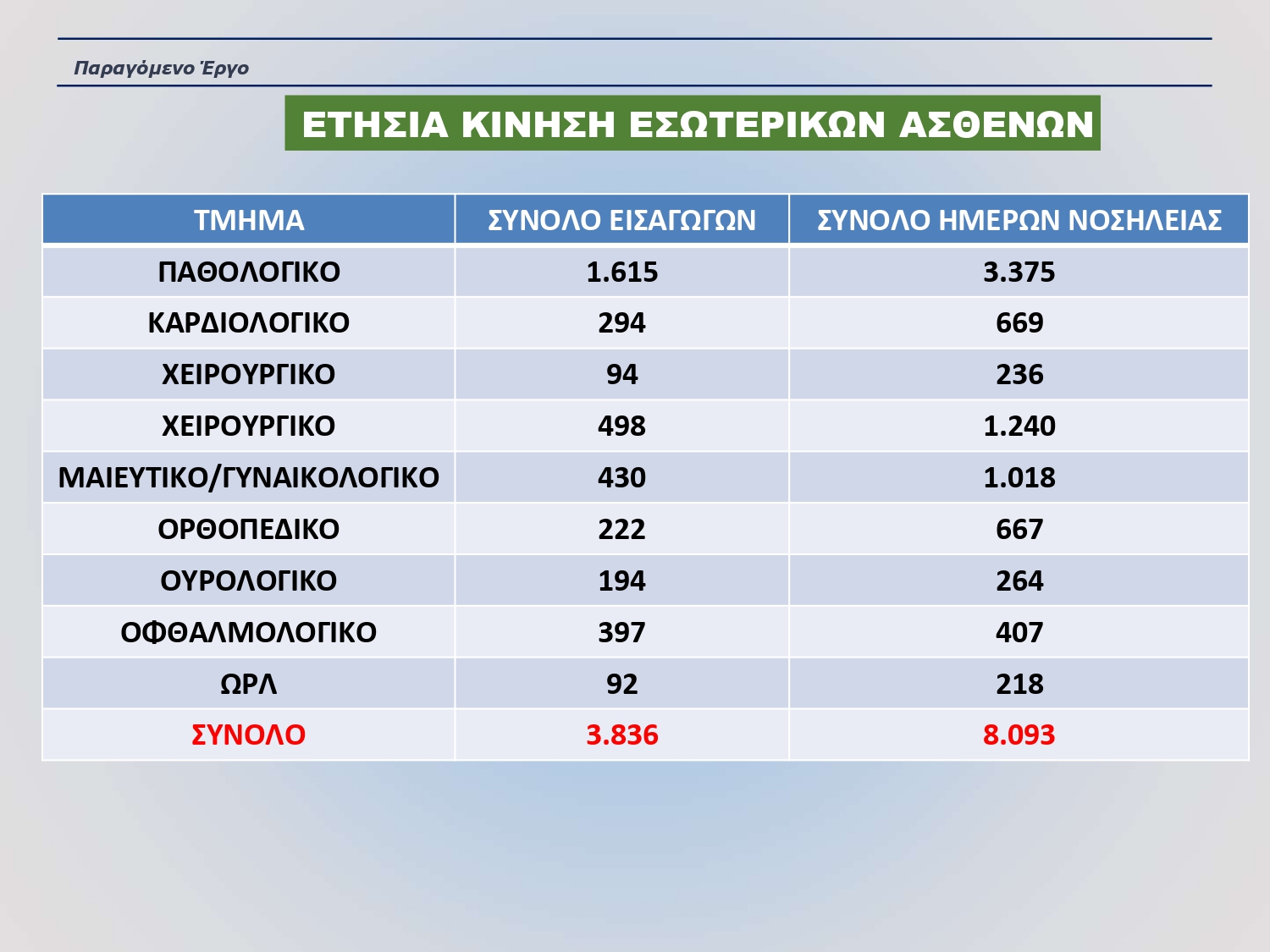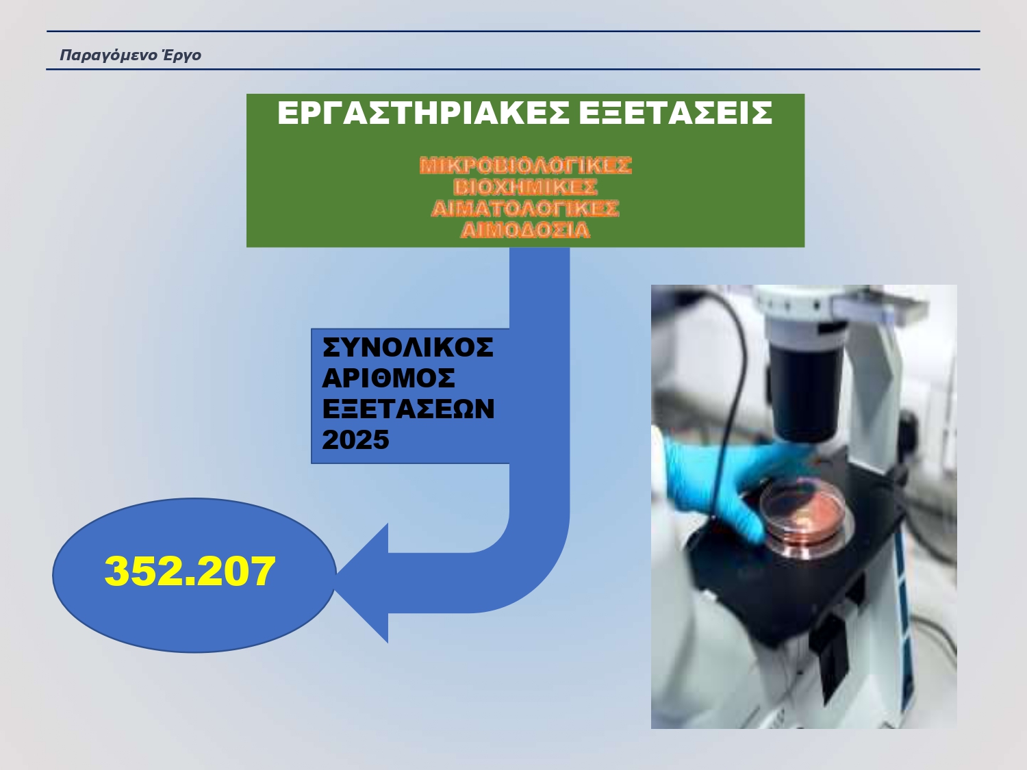 • 352.207 εργαστηριακές εξετάσεις (μικροβιολογικές, βιοχημικές, αιματολογικές, αιμοδοσίας)