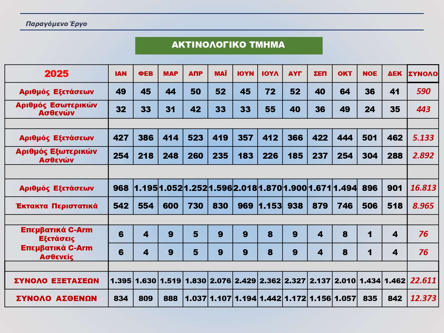 • 22.611 εξετάσεις στο Ακτινολογικό Τμήμα