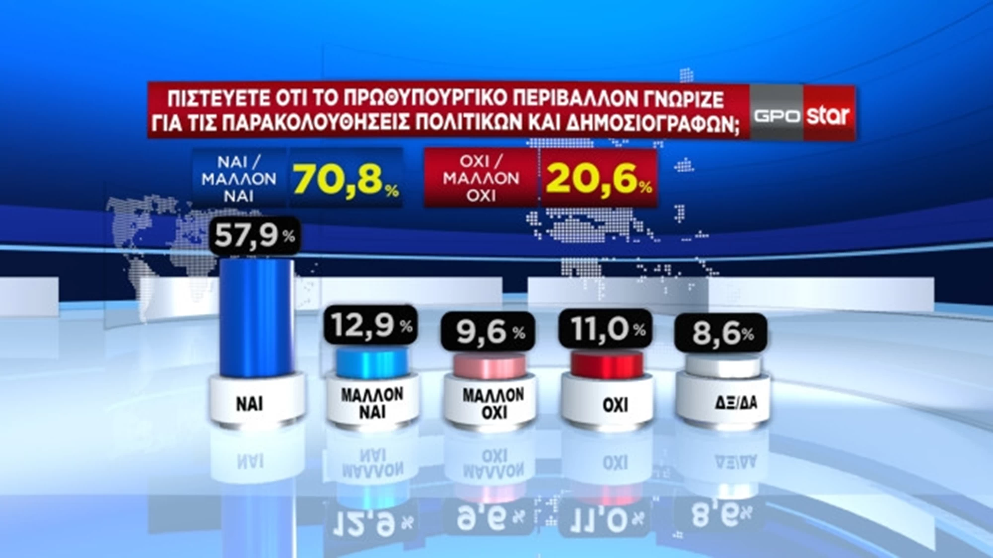 Το 70,8% θεωρεί ότι το πρωθυπουργικό περιβάλλον γνώριζε για τις παρακολουθήσεις πολιτικών και δημοσιογράφων.