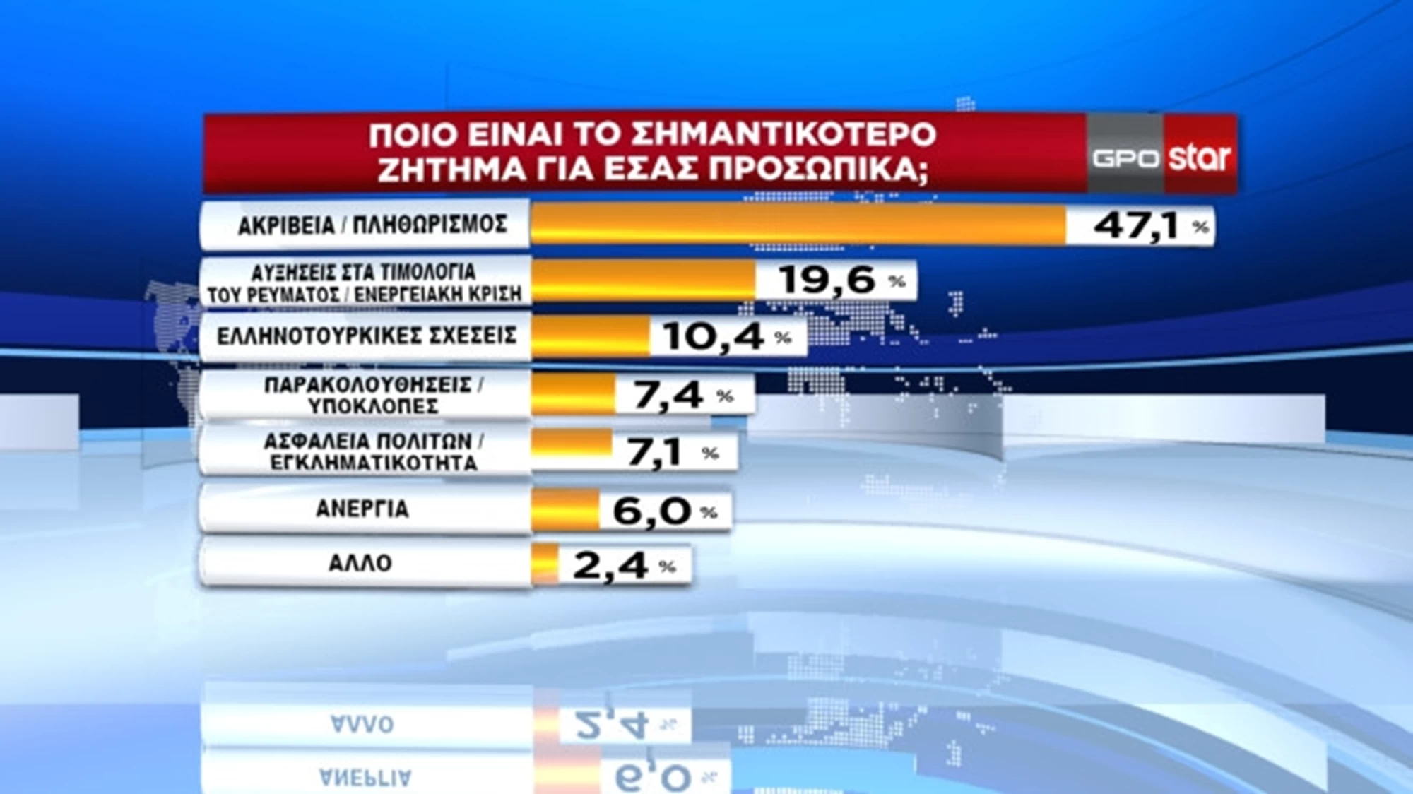 Με μεγάλη διαφορά το πιο σημαντικό πρόβλημα για τους πολίτες είναι η ακρίβεια και ο πληθωρισμός.
