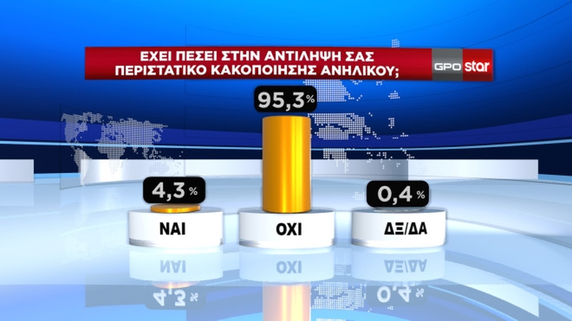 Το 4,3% των ερωτηθέντων δηλώνει ότι έχει πέσει στην αντίληψή του περιστατικό κακοποίησης ανηλίκου, αλλά από αυτούς το 69% δεν το κατήγγειλε.