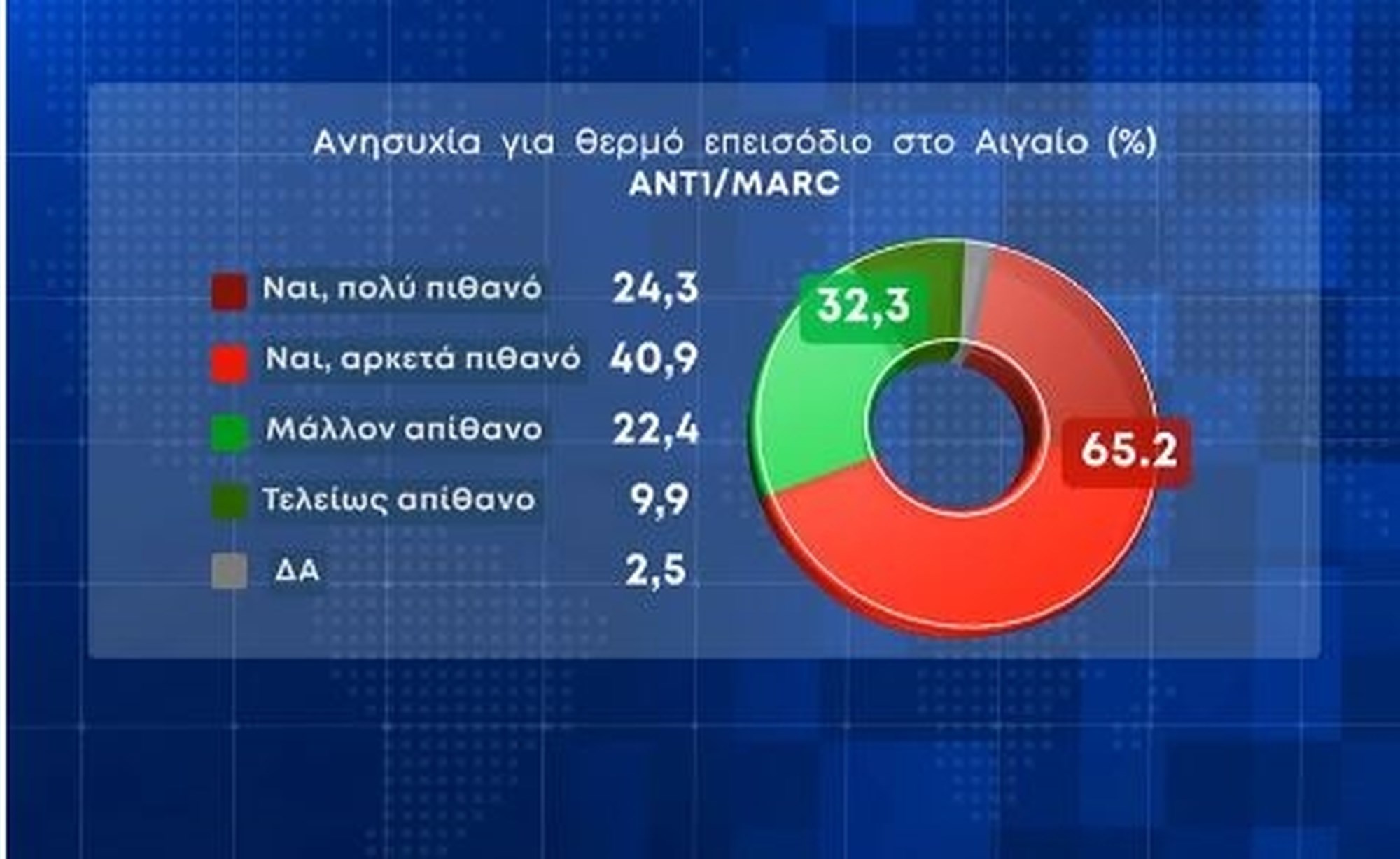 Στο ερώτημα πόσο πιθανό θεωρούν οι Έλληνες ένα θερμό επεισόδιο με την Τουρκία οι απαντήσεις
