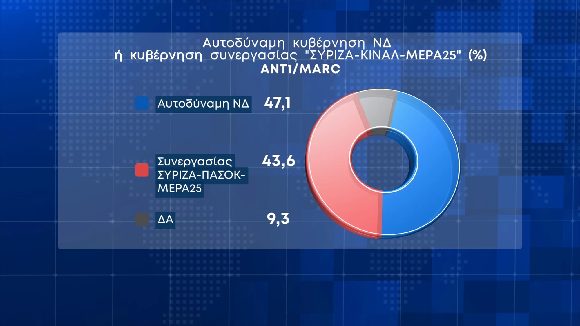 Χαρακτηριστικό είναι ότι η πλειοψηφία των πολιτών προτιμά κυβέρνηση με τη ΝΔ αυτοδύναμη (31,3%) έναντι 14,8% που προτιμά αυτοδύναμο ΣΥΡΙΖΑ.
