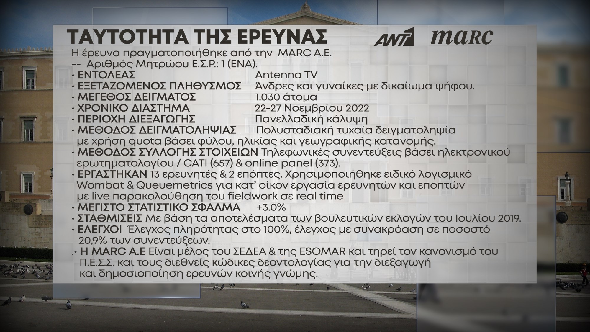 Η πανελλαδική έρευνα πραγματοποιήθηκε το χρονικό διάστημα 22-27 Νοεμβρίου 2022 με δείγμα 1.030 ατόμων.