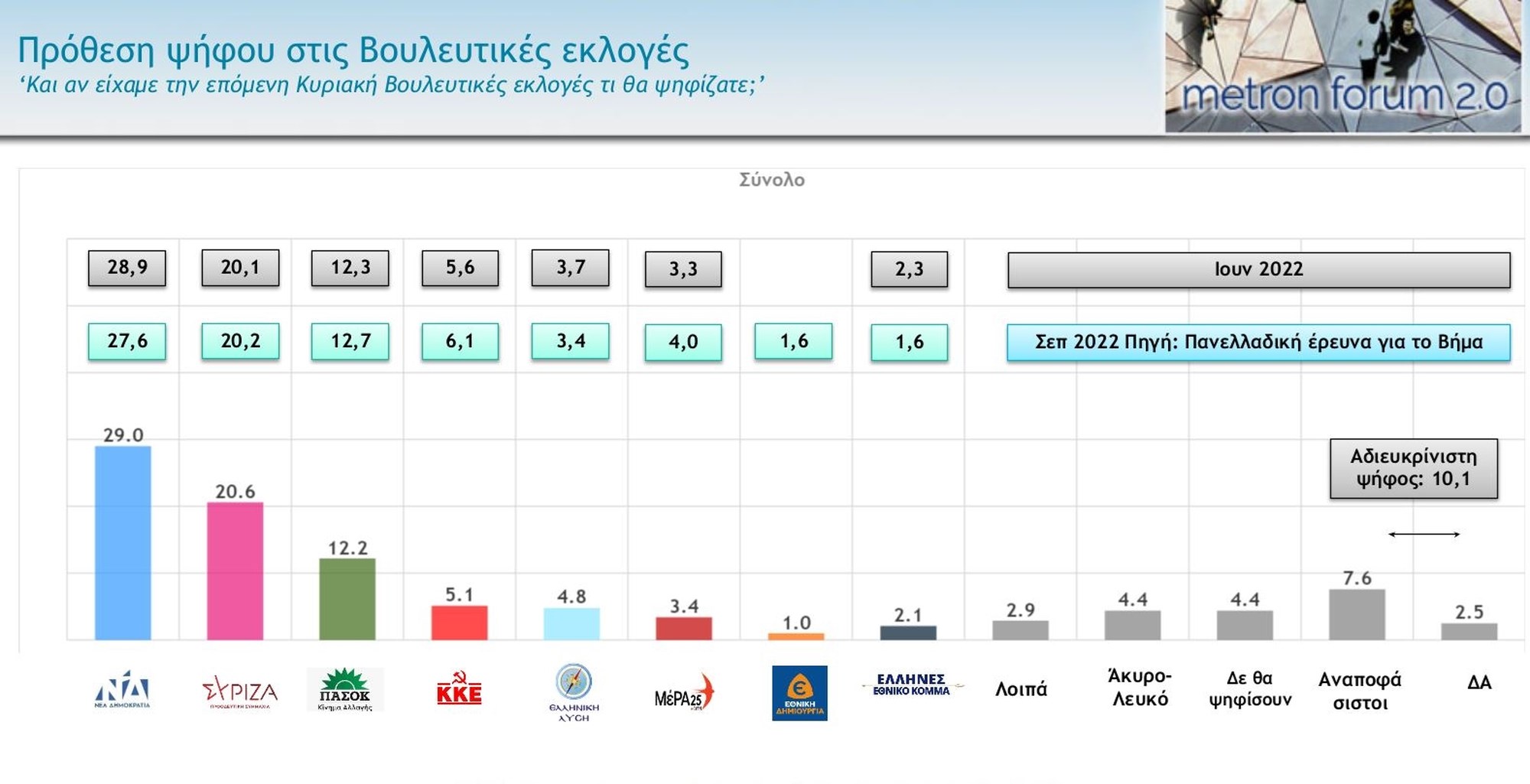 Την ίδια ώρα, ένα ποσοστό 10,1% δηλώνει πως δεν έχει αποφασίσει ακόμα το κόμμα που θα ψηφίσει, ενώ 4,4% των ερωτηθέντων απάντησαν πως δεν θα ψηφίσουν στην επόμενη εκλογική αναμέτρηση.