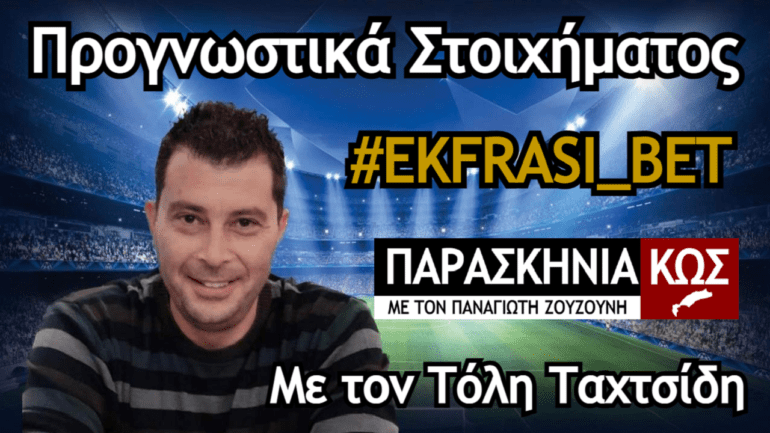 Μια νέα στήλη στην αθλητική ενότητα της εκπομπής «ΠαρασκηνιαΚΩΣ» με τον Παναγιώτη Ζουζούνη που μεταδίδεται Δευτέρα με Παρασκευή 08:00 με 10:00 το πρωί. Στον “αέρα” του Έκφραση97 ο γνωστός tipster και αρθρογράφος για θέματα Στοιχήματος Τόλης Ταχτσίδης, μας δίνει τα προγνωστικά και τις αναλύσεις του και μας …πηγαίνει ταμείο ! Δείτε τις σημερινές προτάσεις…