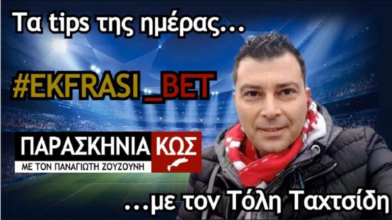 Μια νέα στήλη στην αθλητική ενότητα της εκπομπής «ΠαρασκηνιαΚΩΣ» με τον Παναγιώτη Ζουζούνη που μεταδίδεται Δευτέρα με Παρασκευή 08:00 με 10:00 το πρωί. Στον “αέρα” του Έκφραση97 ο γνωστός tipster και αρθρογράφος για θέματα Στοιχήματος Τόλης Ταχτσίδης, μας δίνει τα προγνωστικά και τις αναλύσεις του και μας …πηγαίνει ταμείο ! Δείτε τις σημερινές προτάσεις…