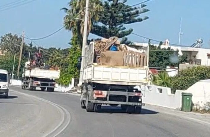 Ο Ε97 σας παρουσιάζει κατ’ αποκλειστικότητα φωτογραφίες των φορτηγών του Δήμου να βρίσκονται καθ’ οδόν κι αργότερα να εισέρχονται στο χώρο του παλαιού λατομείου, καθώς και το περιπολικό της ΕΛ. ΑΣ. το οποίο κατευθύνεται στο χώρο προς άσκηση ελέγχου: