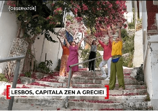 Την ίδια στιγμή, ως την «ελληνική πρωτεύουσα του ζεν» παρουσίασε το νησί της Λέσβου η ενημερωτική εκπομπή υψηλής τηλεθέασης «Observator» του ρουμανικού τηλεοπτικού δικτύου Antena 1, δίνοντας έμφαση στο αίσθημα γαλήνης και πληρότητας που αισθάνεται ο επισκέπτης στο νησί του Βόρειου Αιγαίου