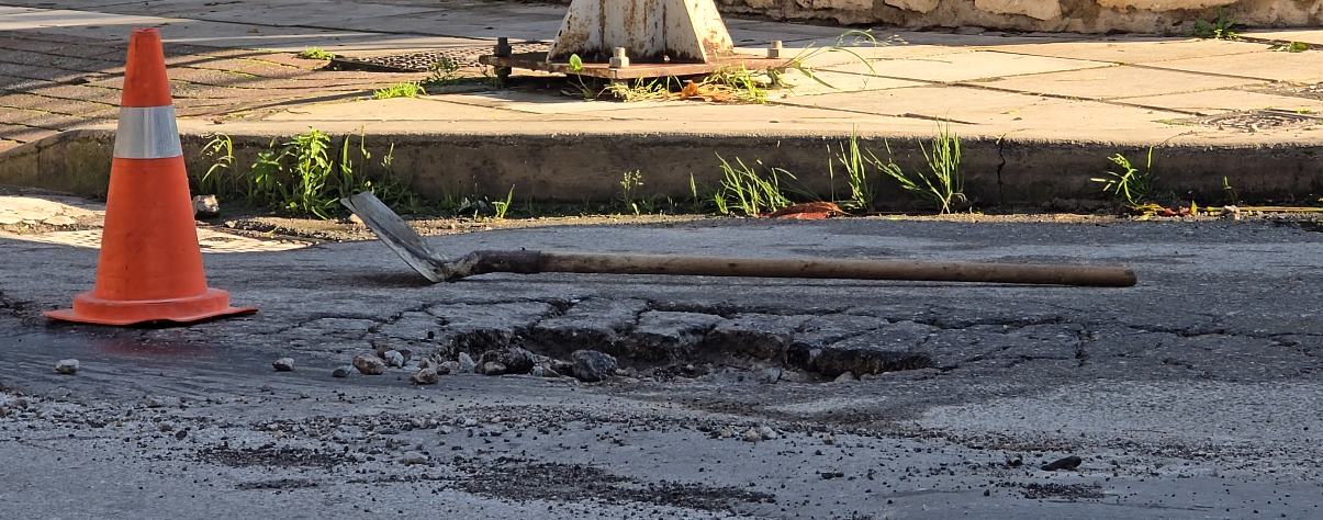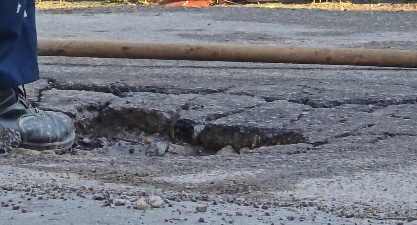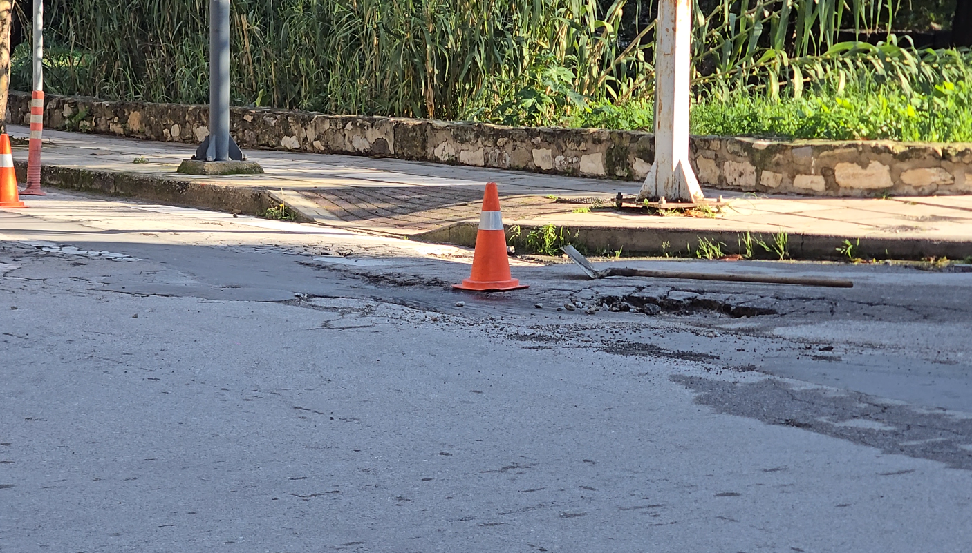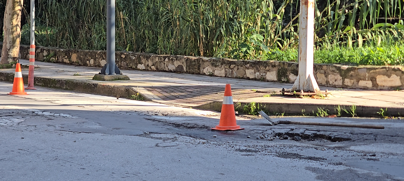 Η κατάσταση επιδεινώθηκε μετά το πέρασμα της κακοκαιρίας Byron, με αποτέλεσμα σήμερα, ύστερα και από τις επανειλημμένες διαμαρτυρίες πολιτών, να μεταβεί στο σημείο συνεργείο για επιτόπιες παρεμβάσεις προσθήκης ασφαλτικού υλικού, ώστε να κλείσουν προσωρινά τα επικίνδυνα ανοίγματα.