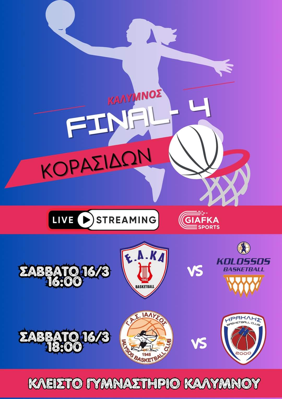 Final Four ΚΟΡΑΣΙΔΩΝ στην Κάλυμνο το Σάββατο 16/3 Live streaming