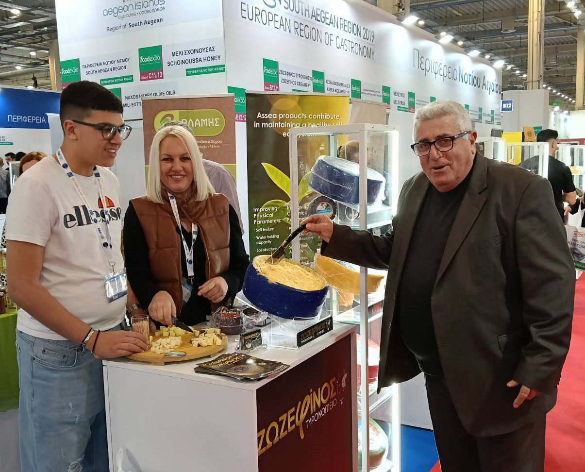 Με τις γεύσεις και τα αρώματα των Κυκλάδων και της Δωδεκανήσου να «πλημμυρίζουν» το εκθεσιακό κέντρο Metropolitan Expo, η Περιφέρεια Νοτίου Αιγαίου επιβεβαίωσε τη δυναμική της στη φετινή διοργάνωση της FOOD EXPO. Η συμμετοχή των νησιωτικών επιχειρήσεων απέσπασε διθυραμβικά σχόλια, αναδεικνύοντας τον πλούτο της αιγαιοπελαγίτικης γης σε ένα διεθνές κοινό.