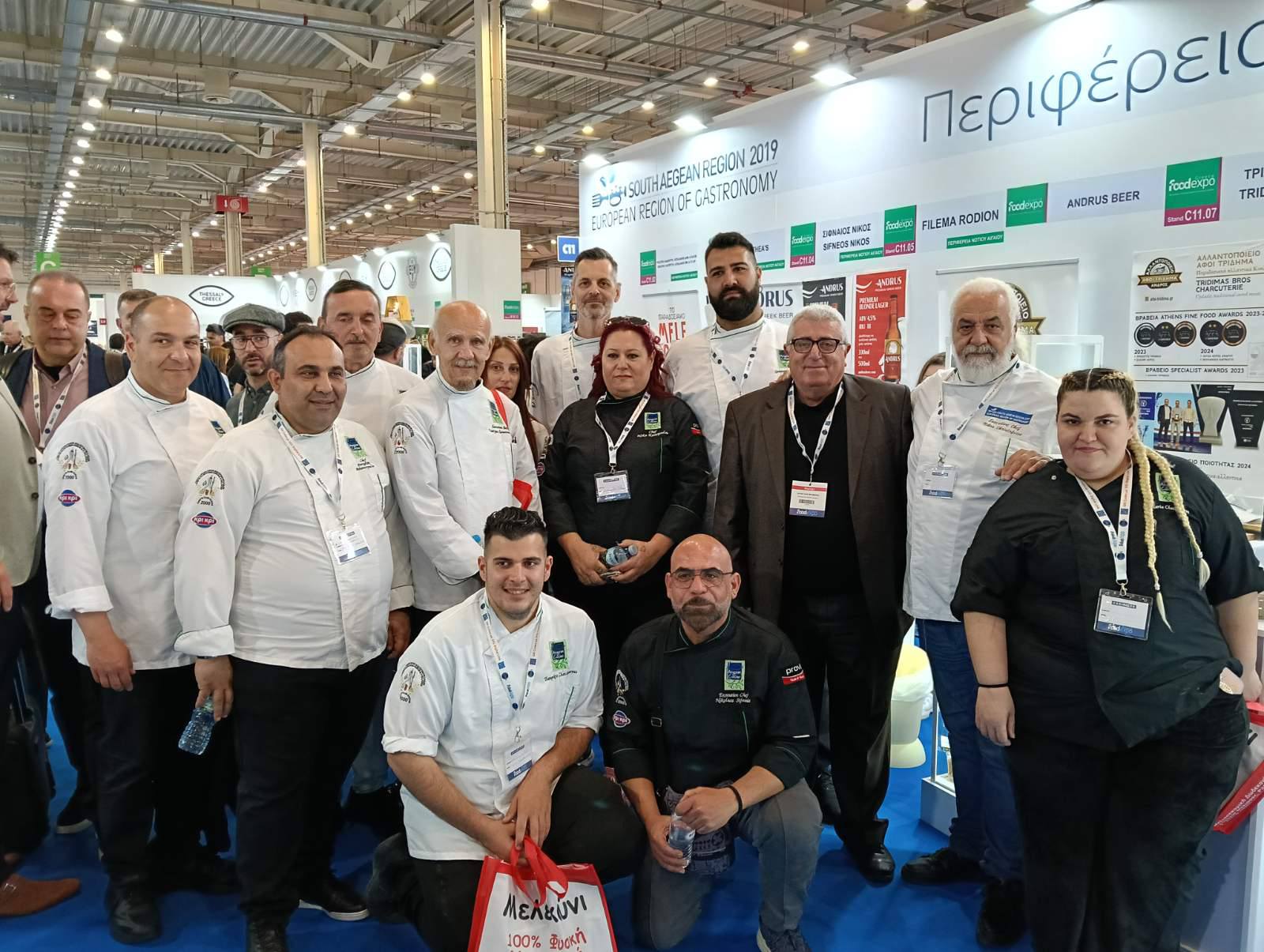 Με τις γεύσεις και τα αρώματα των Κυκλάδων και της Δωδεκανήσου να «πλημμυρίζουν» το εκθεσιακό κέντρο Metropolitan Expo, η Περιφέρεια Νοτίου Αιγαίου επιβεβαίωσε τη δυναμική της στη φετινή διοργάνωση της FOOD EXPO. Η συμμετοχή των νησιωτικών επιχειρήσεων απέσπασε διθυραμβικά σχόλια, αναδεικνύοντας τον πλούτο της αιγαιοπελαγίτικης γης σε ένα διεθνές κοινό.