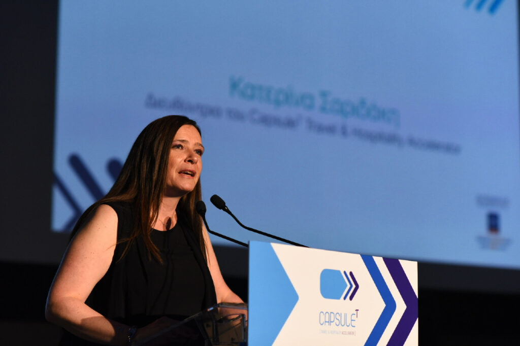 Η διευθύντρια του προγράμματος εξήγησε ότι το CapsuleT είναι μια πρωτοβουλία που ξεκίνησε το 2019 από το Ξενοδοχειακό Επιμελητήριο Ελλάδος. Πρόκειται για ένα πρόγραμμα εκπαίδευσης, καθοδήγησης και ενίσχυσης νεοφυών επιχειρήσεων που αναπτύσσουν τεχνολογικές λύσεις ειδικά για τον τουρισμό.
