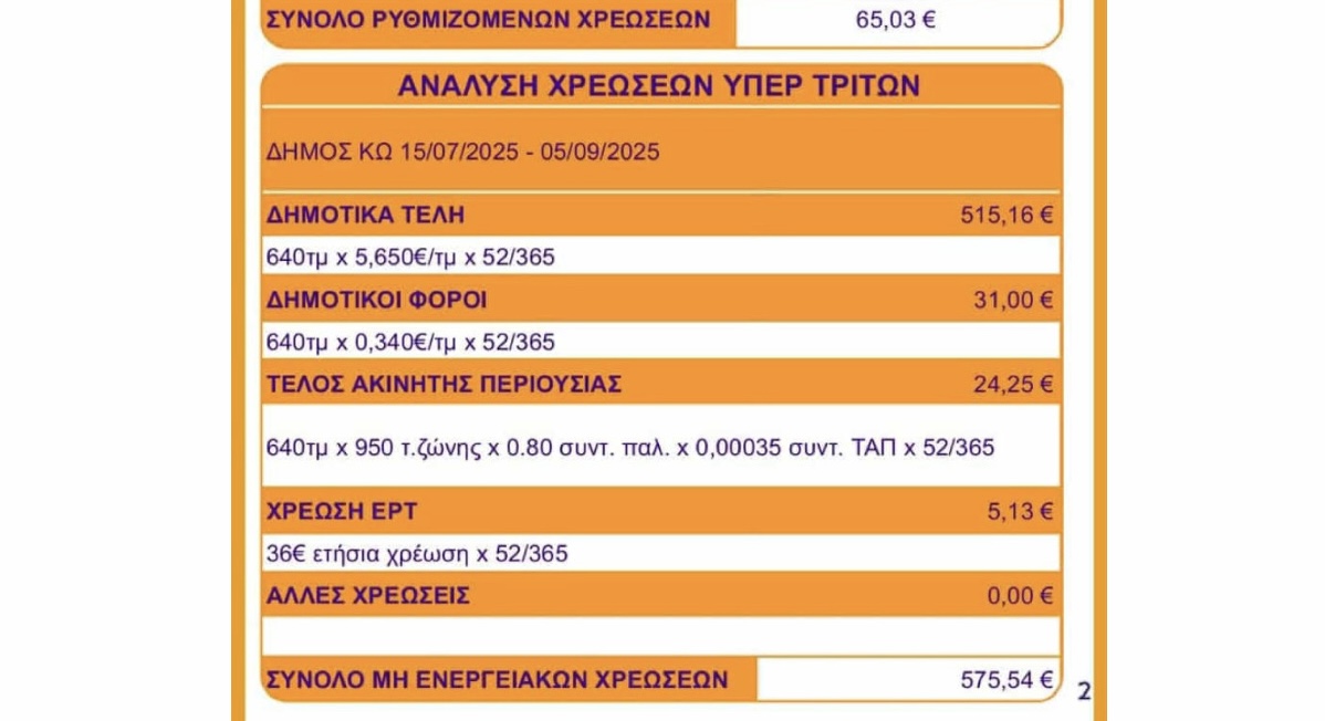 Όταν οι δημότες βλέπουν τέτοιες χρεώσεις, είναι λογικό να αναμένουν βελτιωμένες υπηρεσίες καθαριότητας, συχνότερη αποκομιδή και ουσιαστική φροντίδα του δημόσιου χώρου.