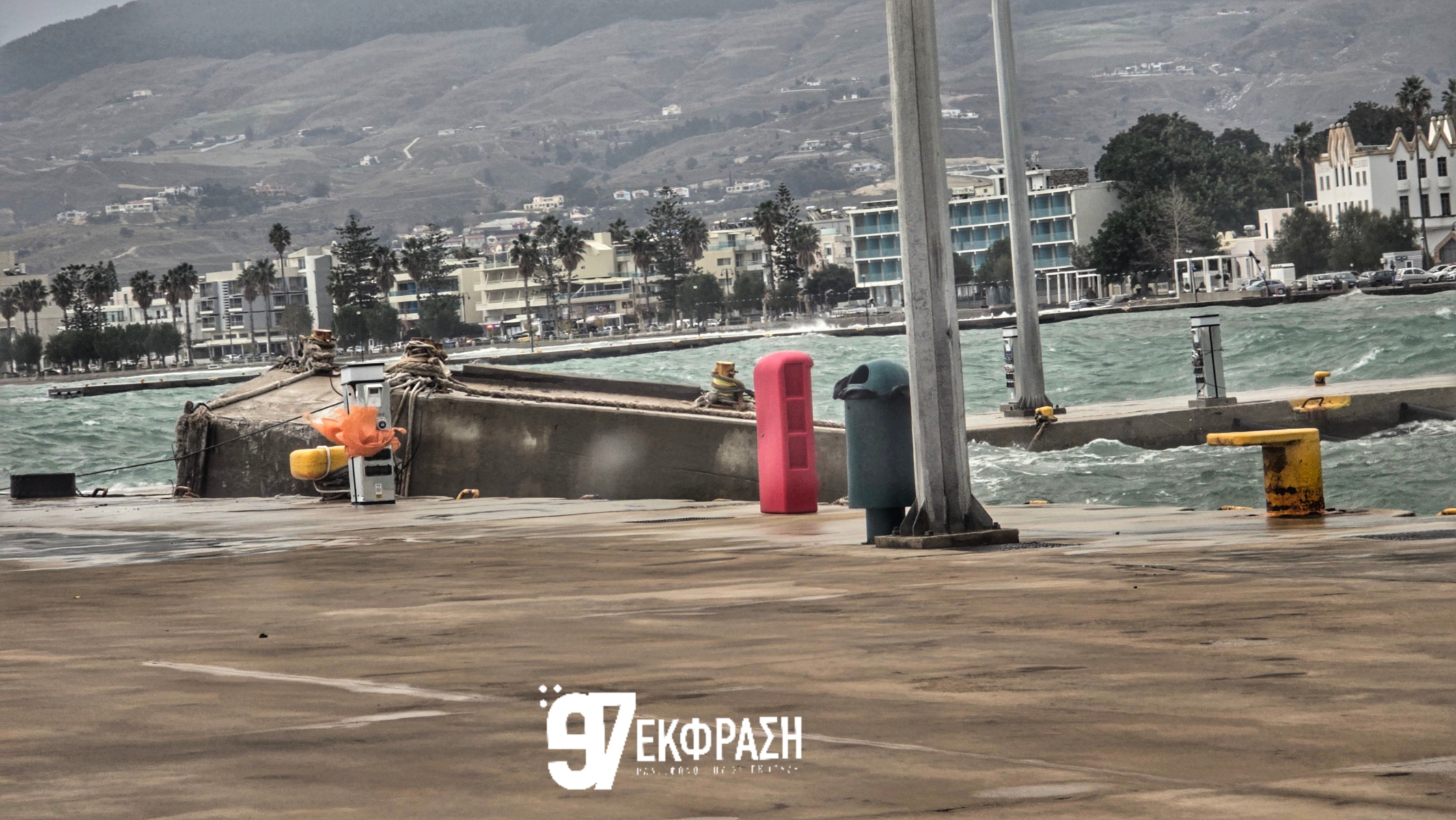 Οι πλωτές δέστρες , οι οποίες βρίσκονται εγκατεστημένες στο ανοικτό λιμάνι, δέχθηκαν από νωρίς το πρωί την ισχυρή πίεση των κυμάτων. Οι δυσμενείς καιρικές συνθήκες οδήγησαν στη σταδιακή καταπόνηση των υλικών, με αποτέλεσμα αρκετές από αυτές να έχουν υποστεί σοβαρές ζημιές ή και μερική καταστροφή.