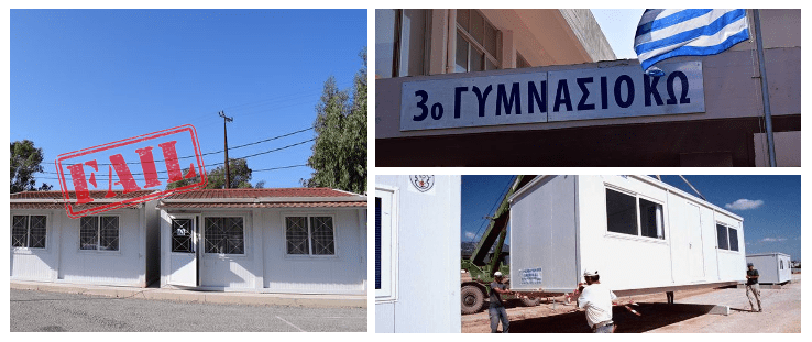 Κραυγή αγωνίας του Συλλόγου Γονέων & Κηδεμόνων του 3ου Γυμνασίου Κω για τις κτιριακές εγκαταστάσεις του νεοϊδερυθέντος σχολείου το οποίο εδώ και 2 χρόνια στεγάζεται σε προκατ αίθουσες και ως «φιλοξενούμενο» στο προαύλιο του 1ου Γυμνασίου.