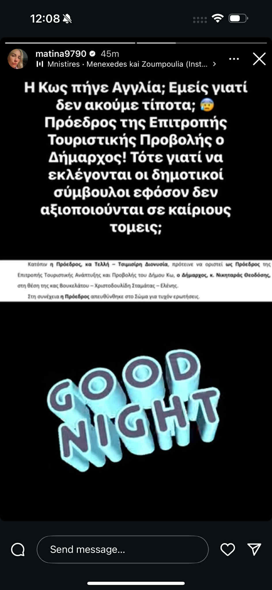 «Η Κως πήγε Αγγλία; Εμείς γιατί δεν ακούμε τίποτα;», αναφέρει χαρακτηριστικά στη δημοσίευσή της, αφήνοντας αιχμές για ελλιπή ενημέρωση σχετικά με τη συμμετοχή του Δήμου σε διεθνείς τουριστικές δράσεις.