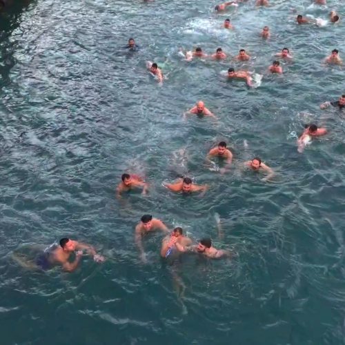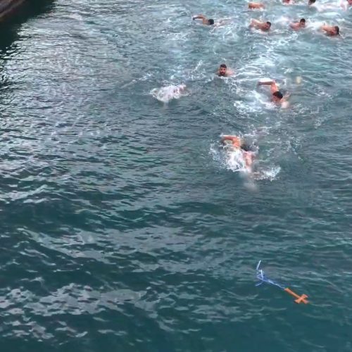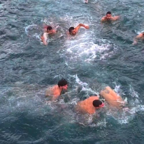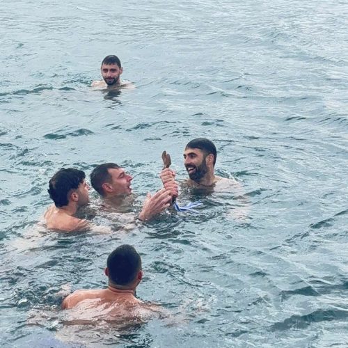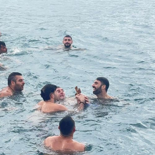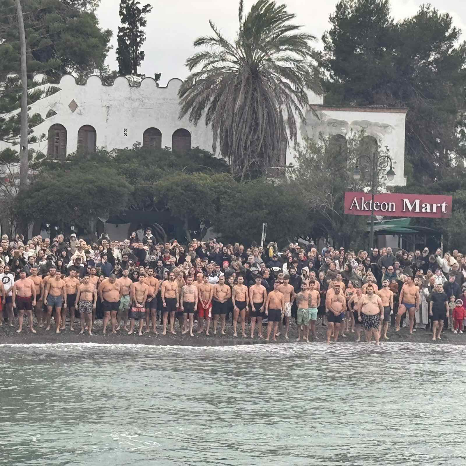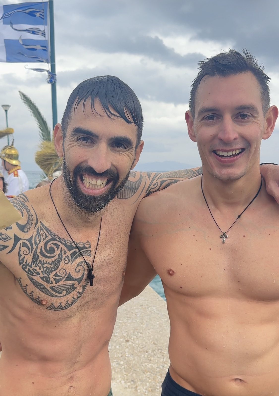 Τον ιερό σταυρό ανέσυραν μαζί οι συμπολίτες μας Αλέξης Μερτζάνογλου (για δεύτερη συνεχόμενη χρονιά) και ο Απόστολος Παπαχρήστος!