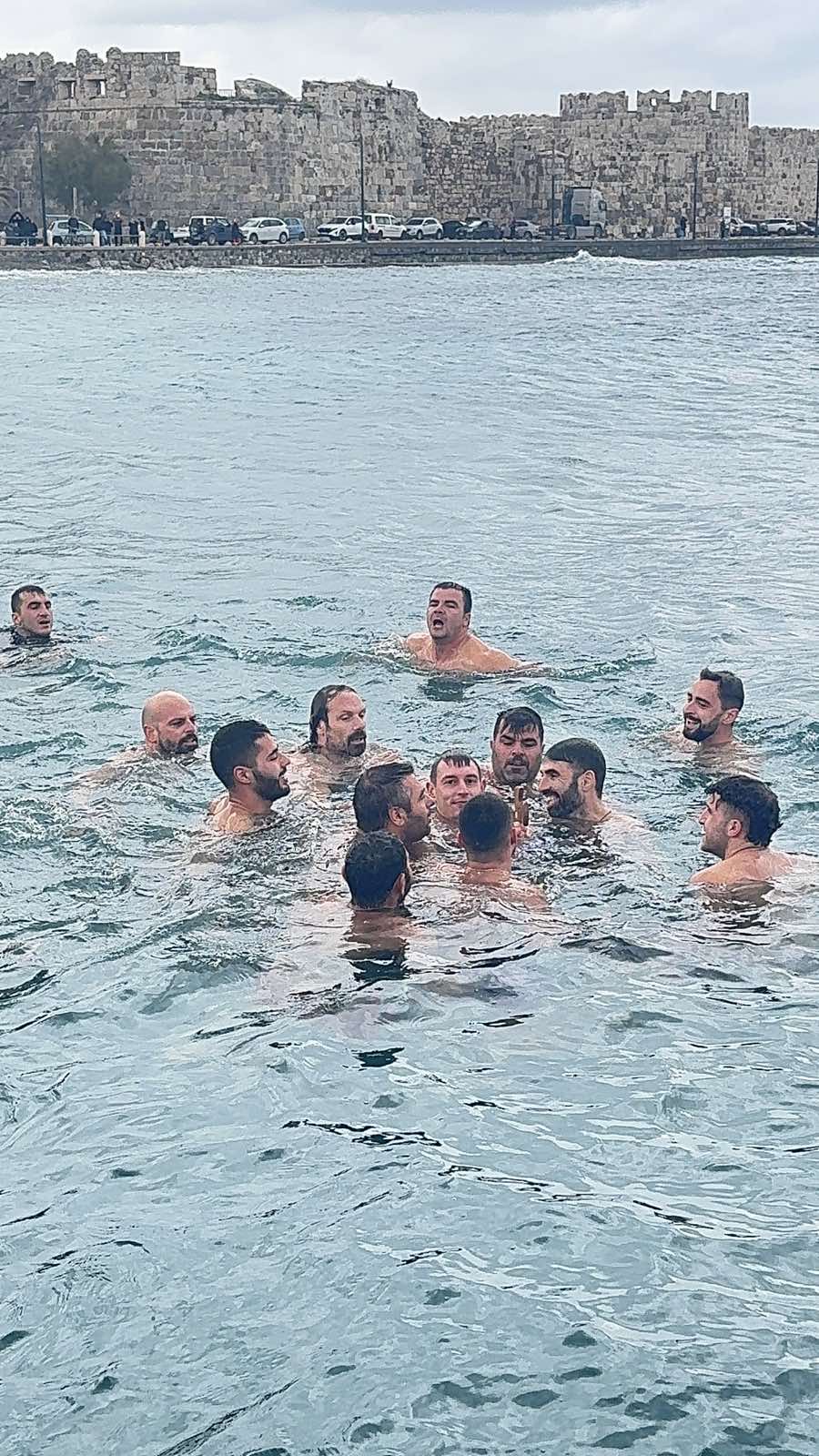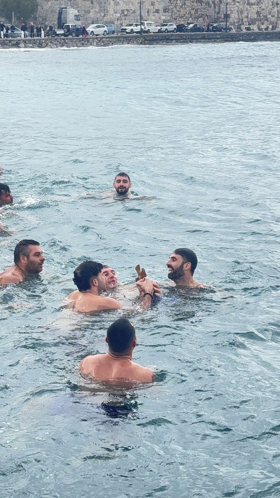 Τον ιερό σταυρό ανέσυραν μαζί οι συμπολίτες μας Αλέξης Μερτζάνογλου (για δεύτερη συνεχόμενη χρονιά) και ο Απόστολος Παπαχρήστος!