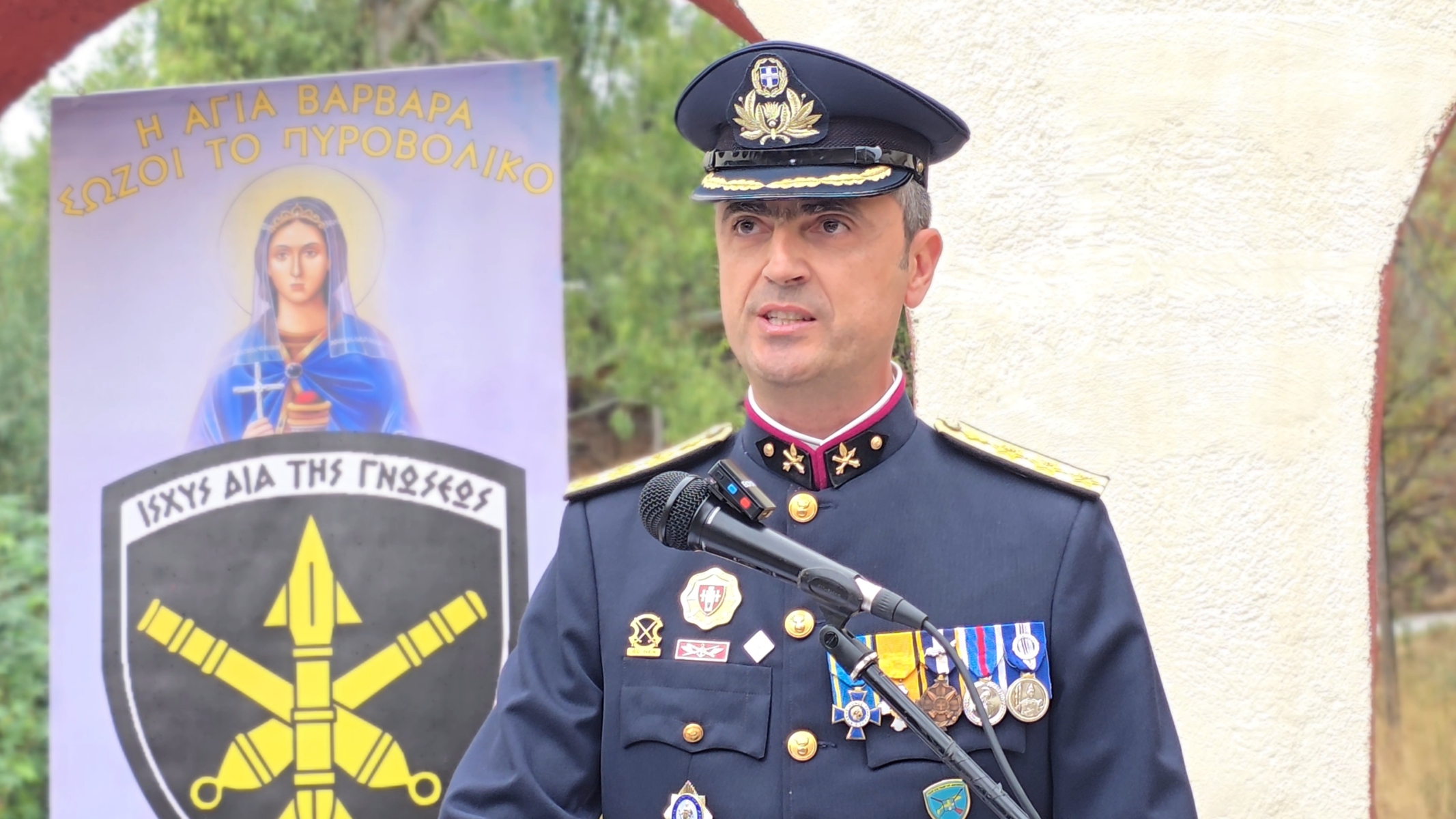 Με τη δέουσα μεγαλοπρέπεια και επισημότητα τιμήθηκε σήμερα η μνήμη της Αγίας Βαρβάρας, προστάτιδος του Πυροβολικού, στο Στρατόπεδο Ανχου Θ. Τσακαλώτου στη Μεσαριά. Η τελετή αποτέλεσε σημείο αναφοράς για το προσωπικό της μονάδας, αλλά και για τους εκπροσώπους της τοπικής αυτοδιοίκησης και των σωμάτων ασφαλείας που παρέστησαν.