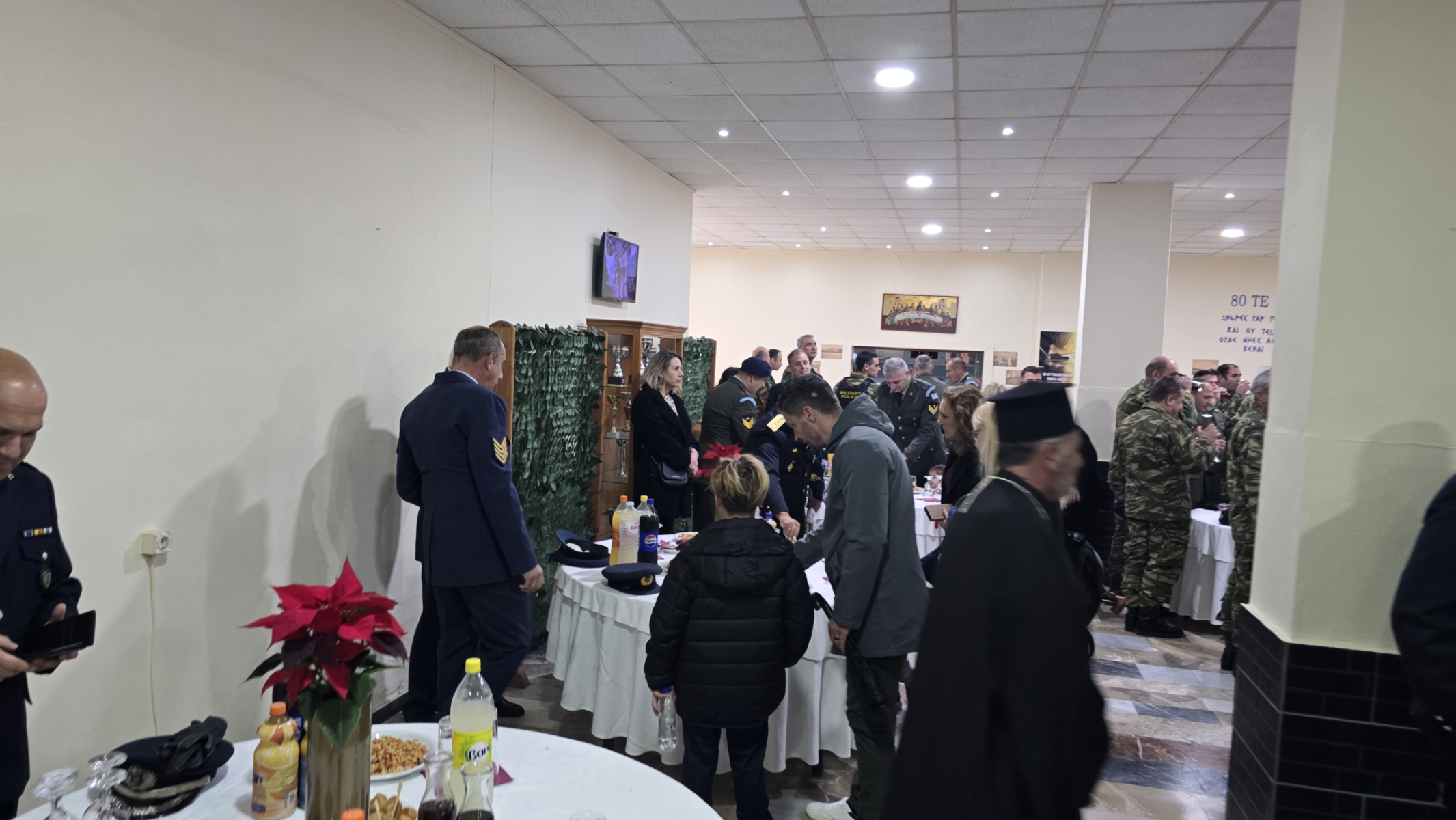 Μετά το πέρας της θρησκευτικής τελετής, οι παρευρισκόμενοι κατευθύνθηκαν στην αίθουσα της μονάδας, όπου παρατέθηκε η καθιερωμένη δεξίωση. Σύμφωνα με το έθιμο, προσφέρθηκαν λουκουμάδες, σε μια ζεστή και ευχάριστη ατμόσφαιρα, που επέτρεψε σε όλους να ανταλλάξουν ευχές και να τιμήσουν την ημέρα με τρόπο συμβολικό αλλά και ουσιαστικό.