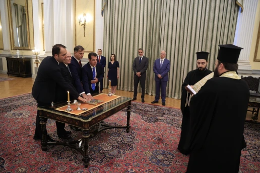 Σε επίσημη τελετή που πραγματοποιήθηκε στο Προεδρικό Μέγαρο, παρουσία του Πρωθυπουργού Κυριάκου Μητσοτάκη, ορκίστηκαν σήμερα ο νέος Υπουργός Μετανάστευσης και Ασύλου, Θάνος Πλεύρης, καθώς και τρεις νέοι υφυπουργοί. Η τελετή ορκωμοσίας τελέστηκε από τον Αρχιγραμματέα της Ιεράς Συνόδου, Αρχιμανδρίτη Ιωάννη Καραμούζη, ενώπιον του Προέδρου της Δημοκρατίας Κωνσταντίνου Τασούλα.