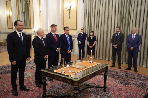 Σε επίσημη τελετή που πραγματοποιήθηκε στο Προεδρικό Μέγαρο, παρουσία του Πρωθυπουργού Κυριάκου Μητσοτάκη, ορκίστηκαν σήμερα ο νέος Υπουργός Μετανάστευσης και Ασύλου, Θάνος Πλεύρης, καθώς και τρεις νέοι υφυπουργοί. Η τελετή ορκωμοσίας τελέστηκε από τον Αρχιγραμματέα της Ιεράς Συνόδου, Αρχιμανδρίτη Ιωάννη Καραμούζη, ενώπιον του Προέδρου της Δημοκρατίας Κωνσταντίνου Τασούλα.