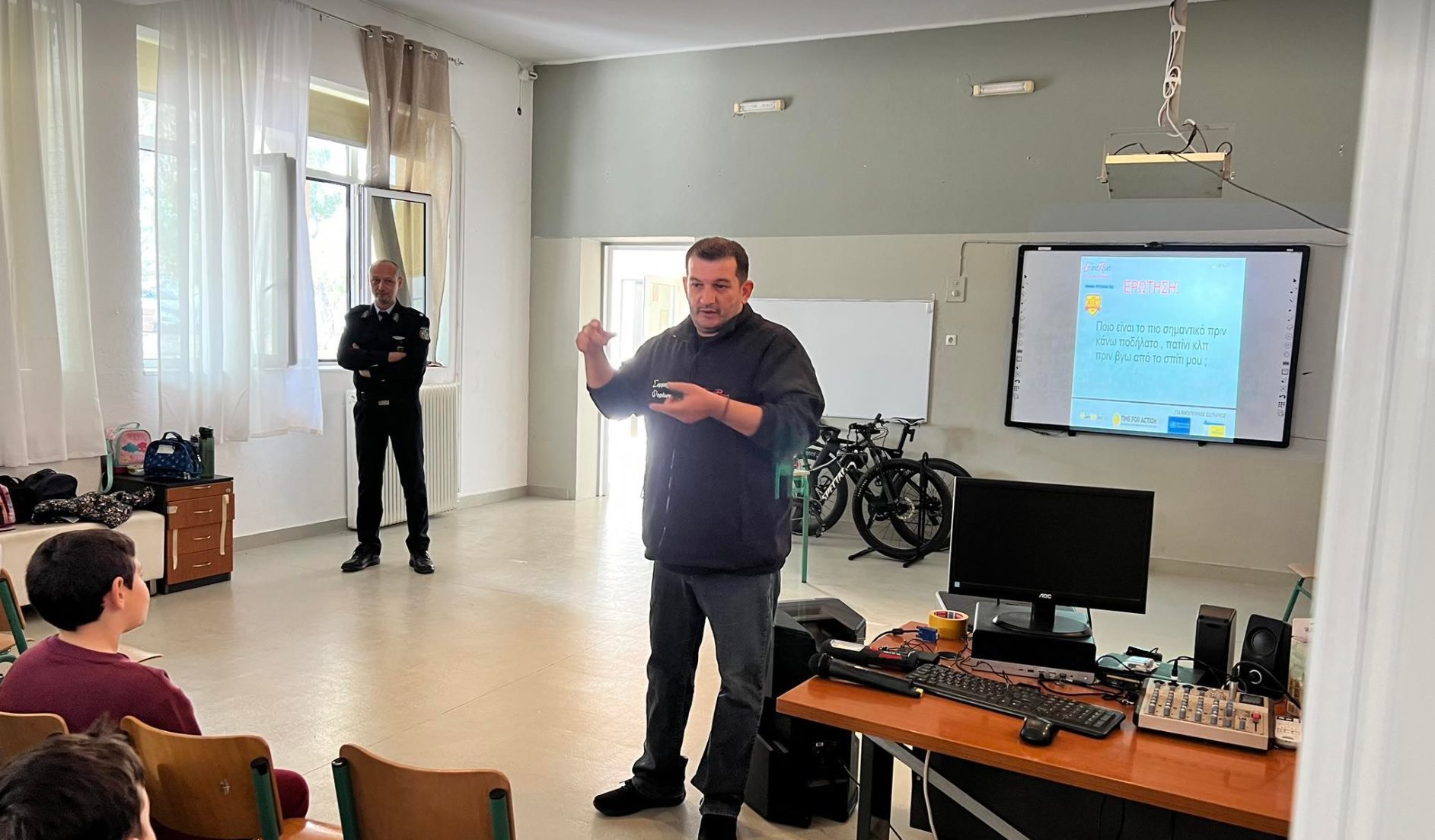 Αθλητές και γονείς της Ακαδημίας Κω μέσα από μία εξαιρετική παρουσίαση σημάνσεων και κανόνων του Κώδικα Οδικής Κυκλοφορίας από τους εκπροσώπους του Τμήματος Τροχαίας Κω και του My Grand Road, είχαν την ευκαιρία, οι μεν πρώτοι να λάβουν σημαντικές πληροφορίες για την οδική ασφάλειά τους κατά τις μετακινήσεις με τη χρήση του ποδηλάτου και οι δεύτεροι να θυμηθούν λεπτομέρειες του Κ.Ο.Κ. αλλά και να εστιάσουν σε λεπτομέρειες που πρέπει να προσέχουν τα παιδιά τους κατά τις μετακινήσεις τους με το ποδήλατο. Εντυπωσίασαν τους παρευρισκόμενους, μικρούς και μεγάλους, όπως και κατά την πρώτη ημέρα στα σχολεία Α’ βάθμιας και Β’ βάθμιας εκπαίδευσης, τα γυαλιά αιθυλικής αλκοόλης, τα οποία προσομοιώνουν την κίνηση του ανθρώπου μετά την κατανάλωση αλκοόλ και με βιωματικό τρόπο έγινε αντιληπτή η μείωση που προκαλεί στα ανθρώπινα αντανακλαστικά