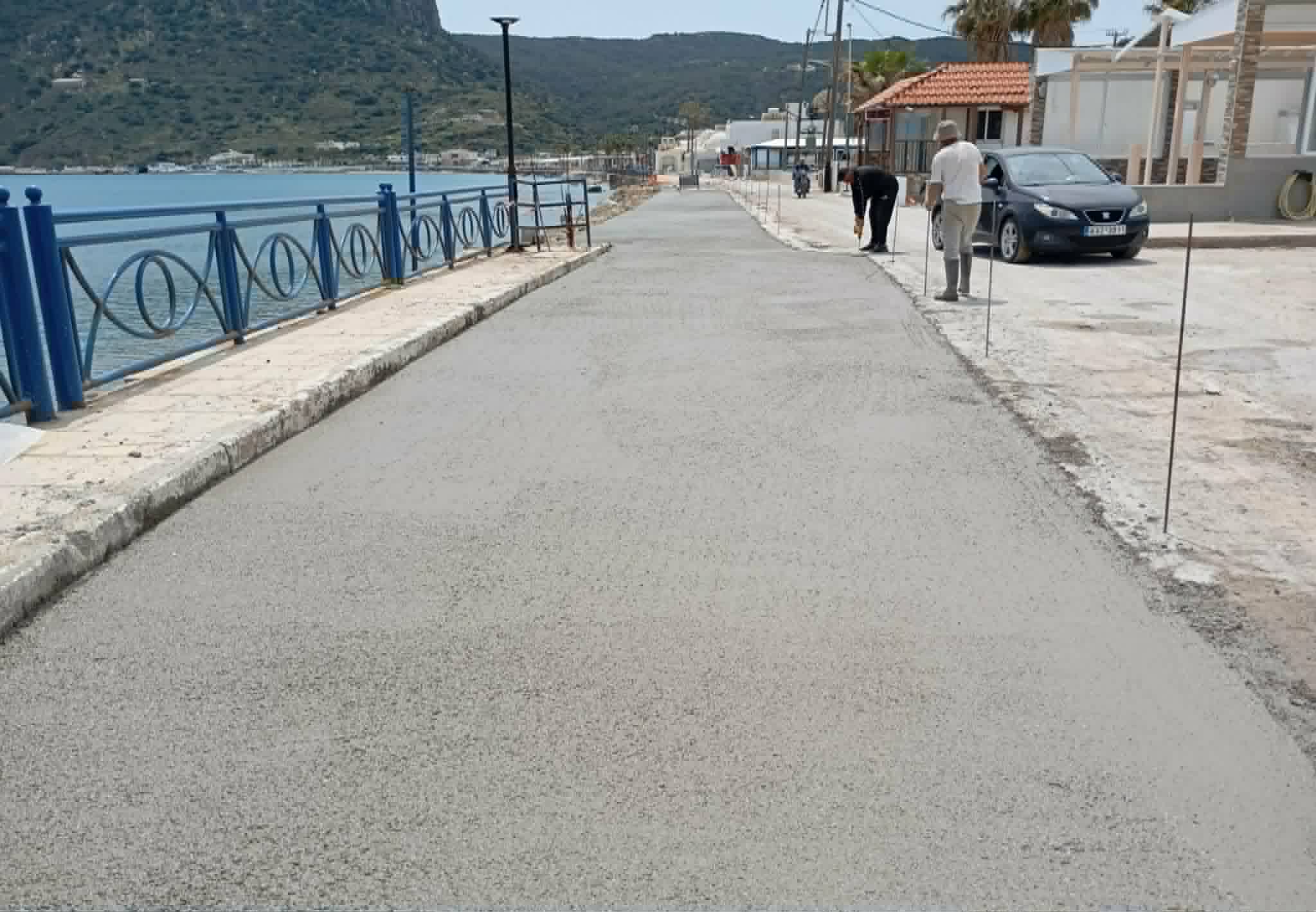 Ολοκληρώθηκαν σήμερα, Τετάρτη 29 Απριλίου, οι εργασίες σκυροδέτησης για την αποκατάσταση του οδοστρώματος στον παραλιακό δρόμο που οδηγεί στο λιμάνι Κεφάλου.
