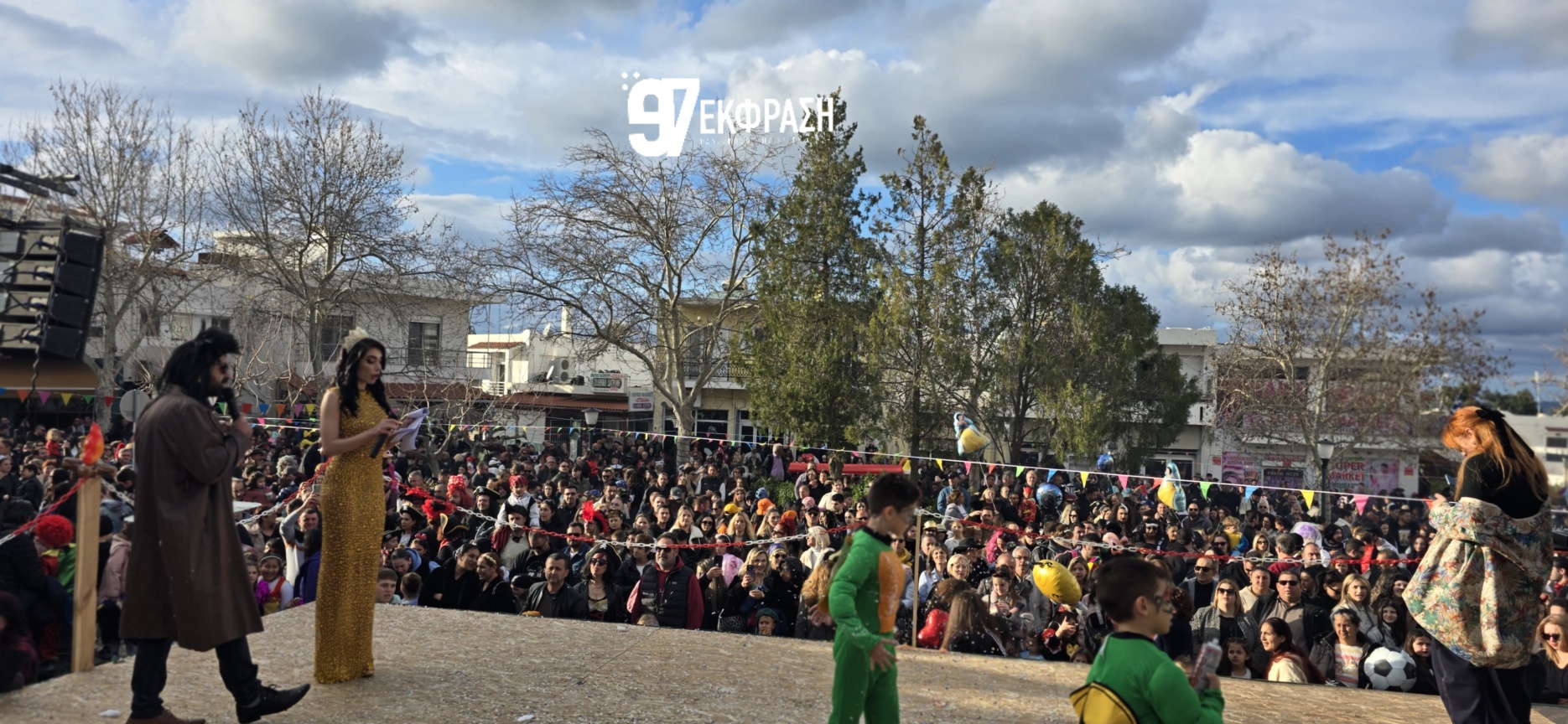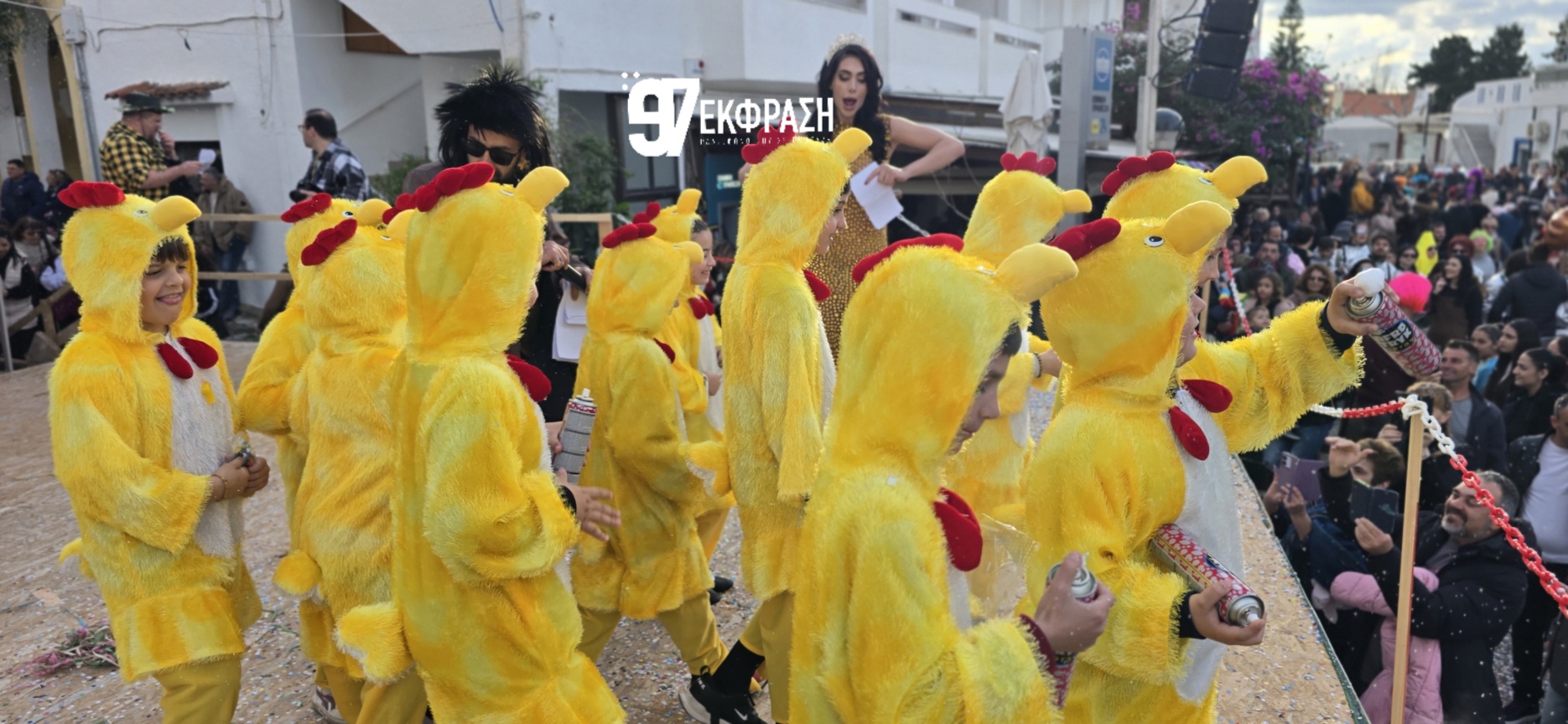 Στον ρόλο των παρουσιαστών βρέθηκαν ο Μιχάλης Μαμουζέλος και η Ντένη Σταματελιά, η οποία αναδείχθηκε και Βασίλισσα του Καρναβαλιού. Με άνεση και ζωντάνια, συντόνισαν τη ροή της παρέλασης, διατηρώντας τη σύνδεση με το κοινό από την αρχή έως το τέλος. Τη μουσική επιμέλεια ανέλαβε ο Γιάννης Κυπραίος, πλαισιώνοντας το σκηνικό με ρυθμό και ένταση.
