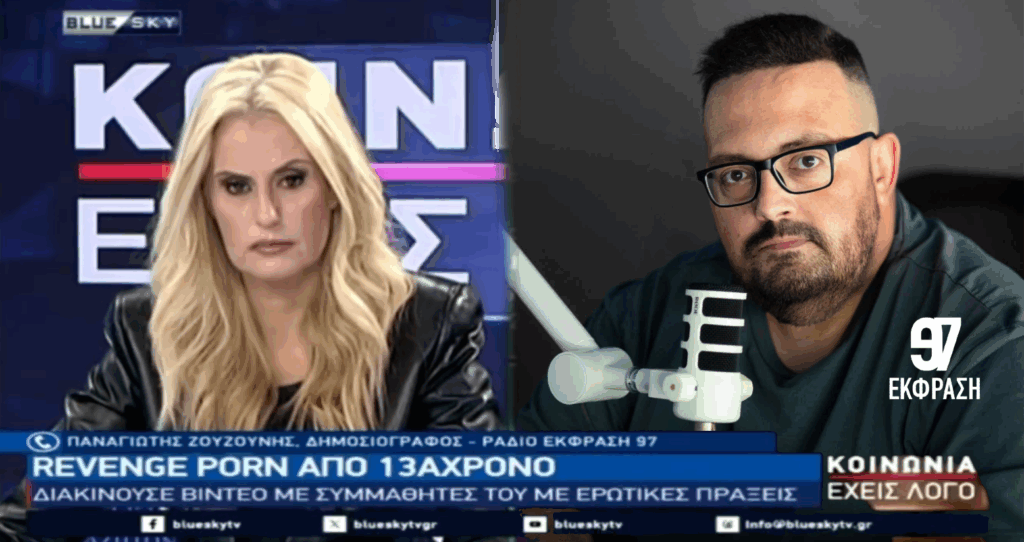 Στον τηλεοπτικό αέρα του Blue Sky TV και της εκπομπής «Κοινωνία Έχεις Λόγο» με τη Μαρία Αραμπατζή βρέθηκε χθες ο Ε97, μεταφέροντας ζωντανά τις τελευταίες εξελίξεις γύρω από την υπόθεση εκδικητικής πορνογραφίας με εμπλεκόμενους ανήλικους που έχει προκαλέσει έντονη ανησυχία στην κοινωνία της Κω.