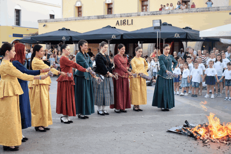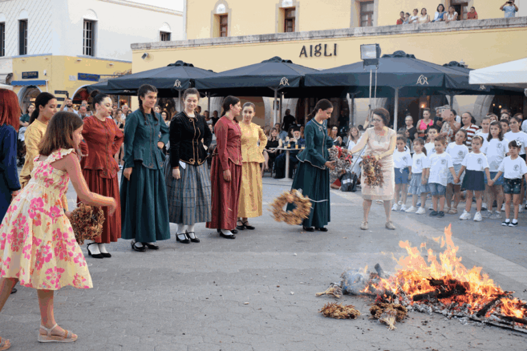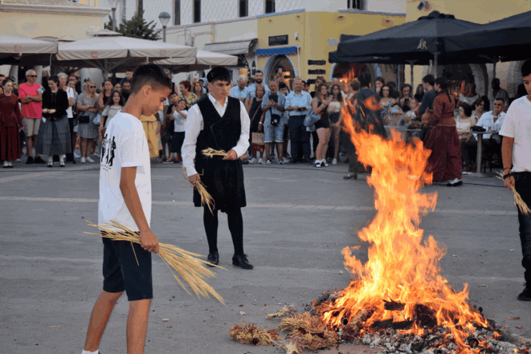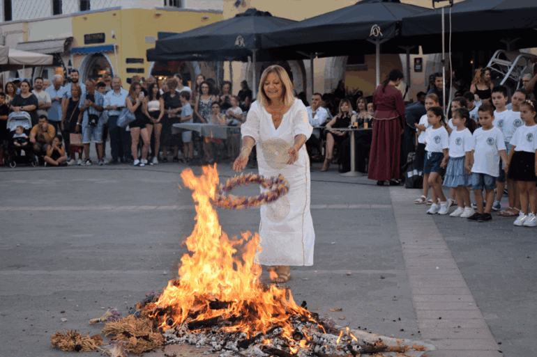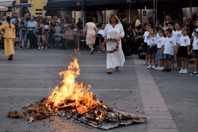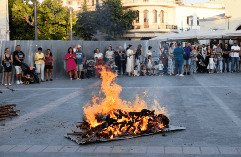 Ένα έθιμο που συνδέεται με την σημερινή ημέρα -παραμονή της εορτής του Άη Γιάννη έχει τις ρίζες του στην αρχαία Ελλάδα (από τις τελετουργίες καθαρμού και μαντείας) και υλοποιείται από νέες κοπέλες. Την εκδήλωση προλόγισε η πρόεδρος Τέτη Φάκκου, η χοροδιδάσκαλος Αρετή Φράγκου παρουσίασε το χορευτικό πρόγραμμα και η Φιλιώ Πάττα μετέφρασε στην αγγλική γλώσσα τα λόγια για το έθιμο στους ξένους επισκέπτες που βρίσκονταν στην πλατεία.